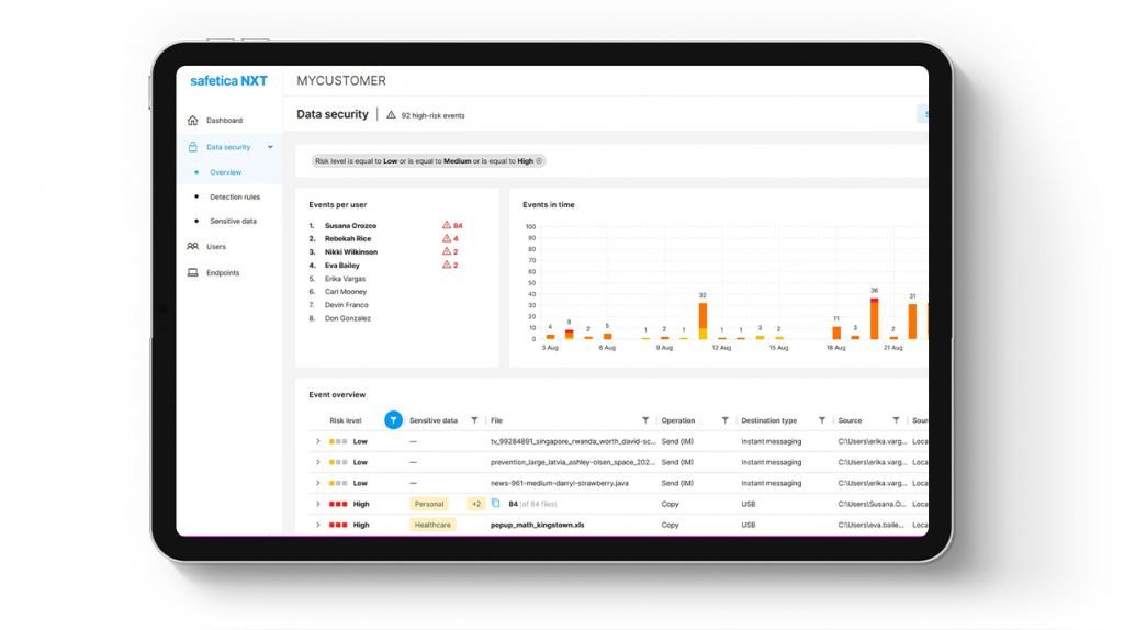 Safetica ONE se stává novou vlajkovou lodí společnosti, která v sobě kombinuje osvědčené Data Loss Prevention postupy a moderní Insider Threat Protection přístup vyhodnocující behaviorální ukazatele. Klasické funkce, jako je klasifikace citlivých dat a blokování jejich neoprávněného vynesení mimo firmu, doplní analýza rizika či detekce podezřelého nakládání s daty. Kombinací obou přístupů dokáže Safetica ONE identifikovat riziko a varovat uživatele hodiny či dny před tím, než se promění ve skutečný bezpečnostní incident.