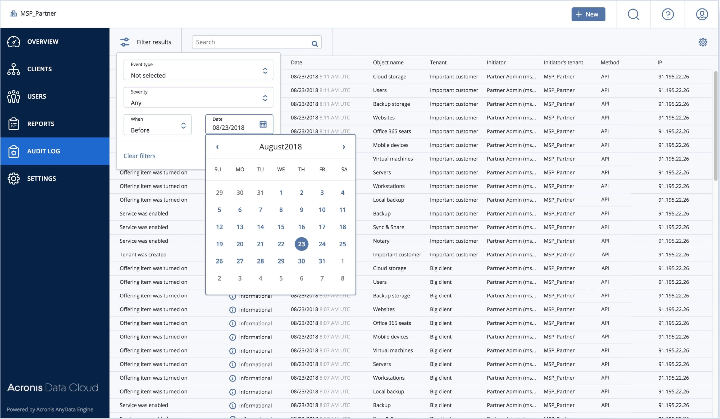 Mezi poskytovateli služeb je platforma Acronis Data Cloud známá svou podporou nativní integrace s nejpopulárnějšími hostingovými automatizačními platformami, systémy PSA (Professional Services Automation), a RMM nástroji pro vzdálený monitoring a správu. Platforma umožňuje poskytovatelům služeb rychle nabídnout na trh nové vlastní služby prostřednictvím své existující infrastruktury pro správu klientských zařízení.