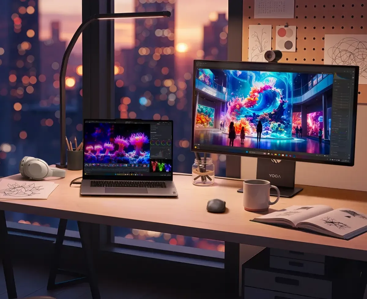 Společnost Lenovo také rozšiřuje produktovou řadu Yoga o další zařízení pro kreativní uživatele a milovníky flexibilních zařízení. Yoga Pro 7i Aura Edition je alternativou k vlajkové lodi Yoga Pro 9i, s procesory až Intel Core Ultra 9 Series 3, grafikou až NVIDIA GeForce RTX 5070 s výkonem 105 W TDP, a volitelným touchpadem typu Force Pad s podporou Yoga Pen Gen 2. Jeho 2.5K PureSight Pro displej s maximálním jasem 1 100 nitů a VESA DisplayHDR True Black 1000 certifikací poskytuje výjimečně čistý obraz, zatímco dva Thunderbolt 4 porty, HDMI 2.1, USB-A Gen 2, a čtečka SD karet umožní maximální konektivitu.