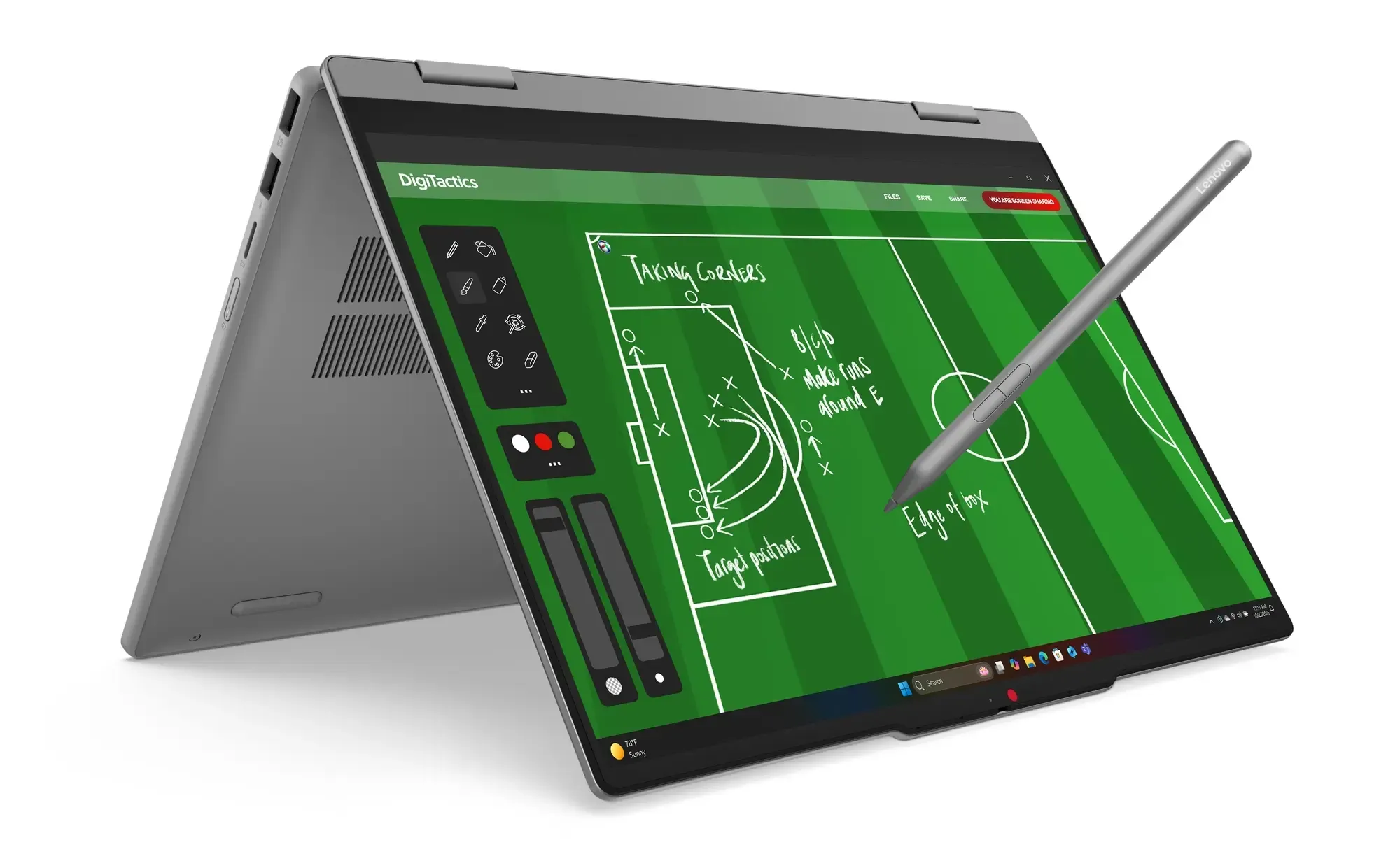 Významnou novinkou je Force Pad, který slouží zároveň jako touchpad i jako kreslicí plocha. V kombinaci s přiloženým Yoga Pen Gen 2 poháněným technologií Wacom, umožňuje přesné skicování, zápis poznámek i práci s návrhy přímo v prostoru touchpadu. Při použití pera notebook automaticky deaktivuje funkce touchpadu, aby se zabránilo nechtěným gestům.