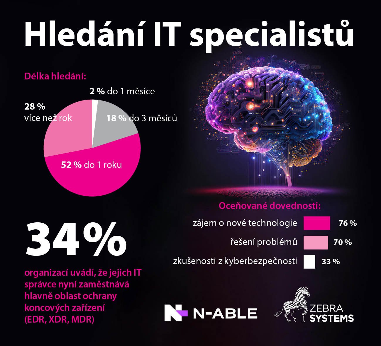 Průzkum společnosti Zebra systems odhalil, že jen 20 % dotázaných partnerů a zákazníků dokáže najít nového IT specialistu s požadovanými dovednostmi do tří měsíců. Déle než rok to trvá 28 % dotázaných. Stále více organizací proto hledá zajištění své kybernetické bezpečnosti u externích dodavatelů a poskytovatelů řízených služeb (MSP).