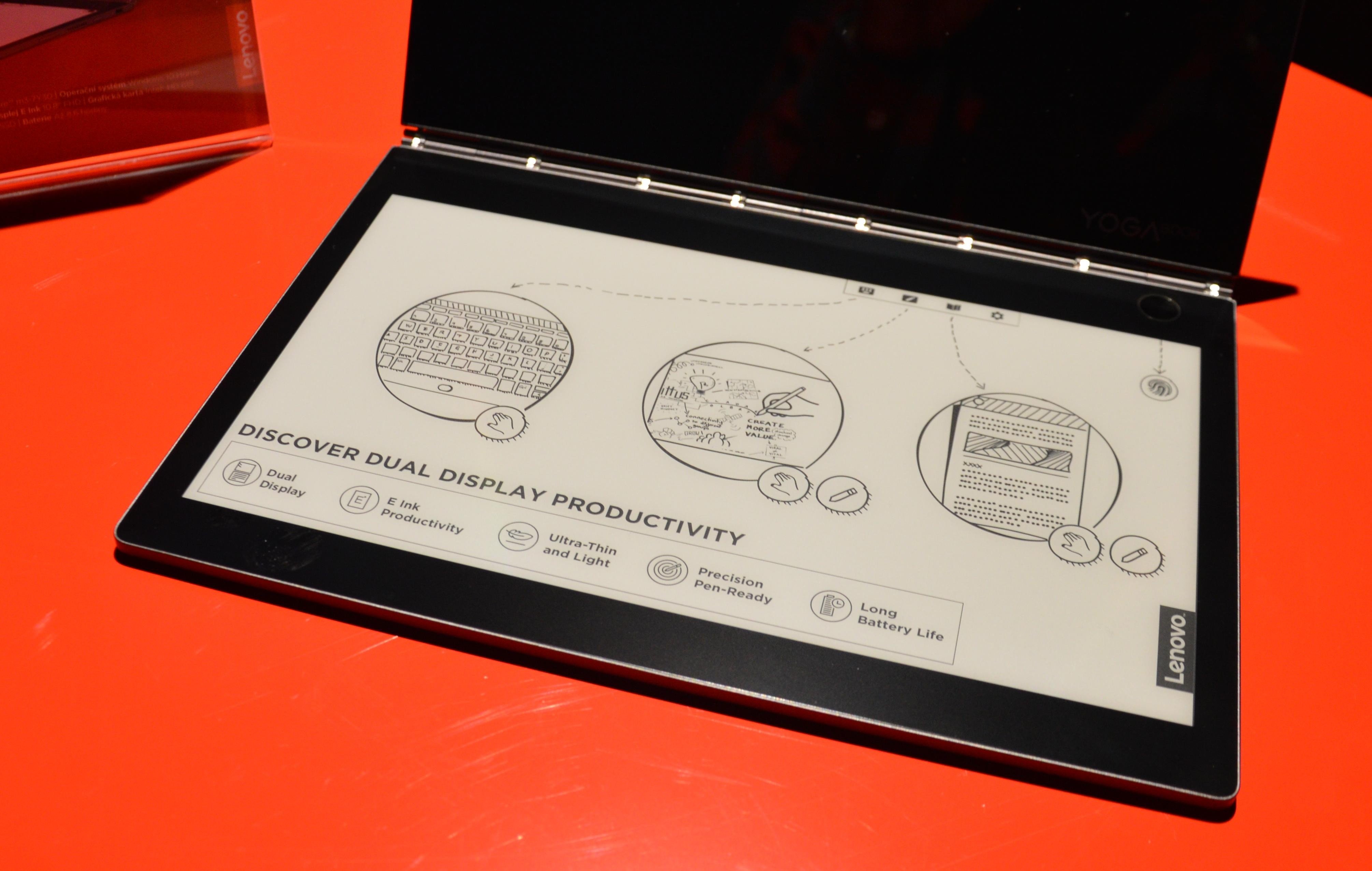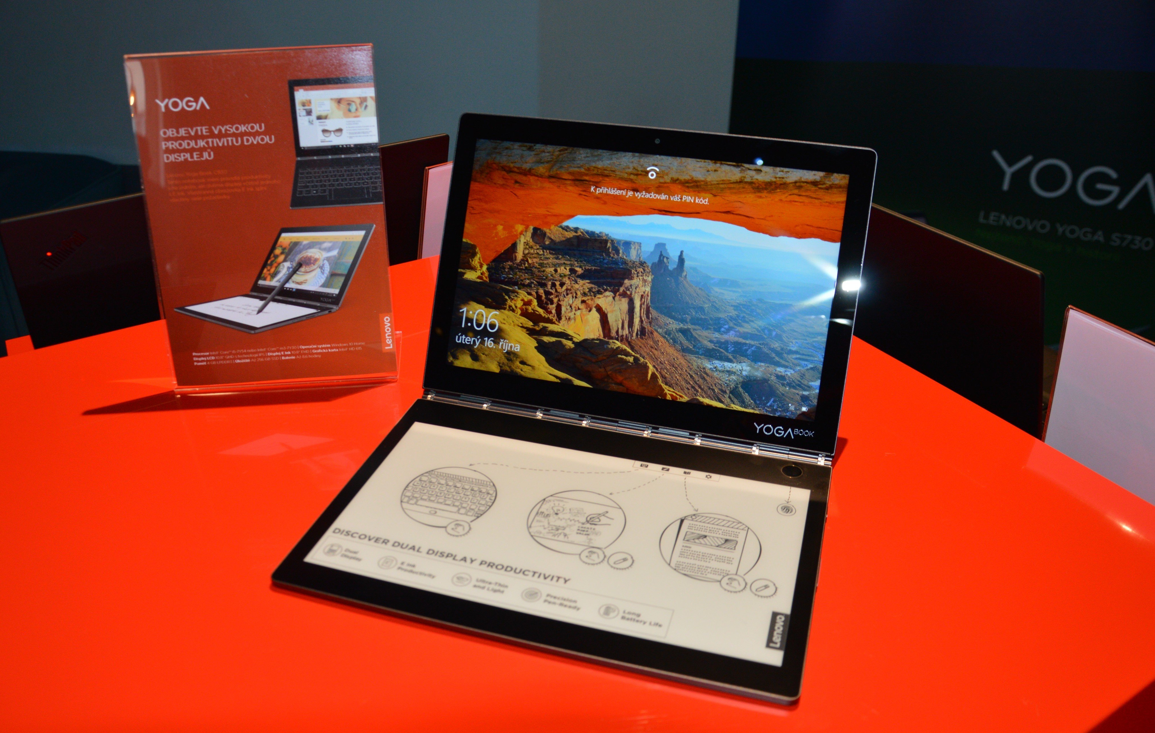 K prvním představitelům nového systému značení patří modely Yoga Book C930 a Yoga C930. První ze jmenovaných modelů zaujme kromě váhy 799 gramů a 9,9mm profilu zejména druhým displejem na místě, kde se běžně nachází klávesnice. Druhý displej je typu E-Ink (můžete ho znát například z čteček elektronických knih, jako je Amazon Kindle) a v závislosti na situaci nabírá podobu dynamické klávesnice s podporou více jazyků, čtečky elektronických knih nebo digitálního papíru pro zachycení nákresů nebo zápisků. Při práci s grafickými programy i psaní poznámek uživatelé ocení pero Precision Pen s 4 096 úrovněmi přítlaku. Elegantní zařízení ve svých útrobách dále ukrývá nejnovější procesor Intel Core i5, 4 GB RAM a 256GB SSD. Primární 10,8“ IPS displej pracuje v rozlišení QHD. Yoga Book C930 na jedno nabití zvládne až 9 hodin nepřetržité práce (v režimu čtečky s E-Ink displejem je to pak až 14 hodin).