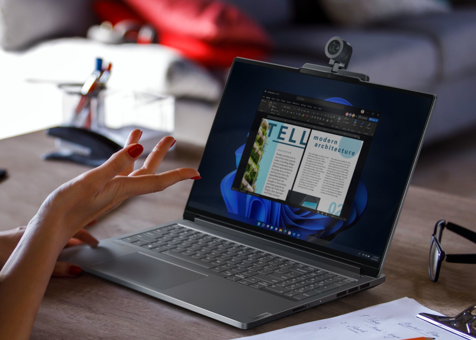 - Externí světlo Lenovo Magic Bay Light s jasem až 200 luxů, které se automaticky zapne při aktivování vestavěné kamery, takže uživatelé mohou vytvářet profesionálně vypadající videa prakticky kdekoli.