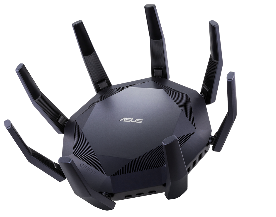 RT-AX89X je dvoupásmový Wi-Fi router 8x8, který poskytuje 1 024-QAM pro vysokorychlostní bezdrátové připojení. S celkovou rychlostí sítě asi 6 000 Mb/s – 1 148 Mb/s v pásmu 2,4 GHz a 4 804 Mb/s v pásmu 5 GHz je RT-AX89X až 2,8x rychlejší než dvoupásmové routery 802.11ac 4x4. Pro ultrarychlé kabelové připojení obsahuje router také dva 10G ethernetové porty. RT-AX89X přichází s doživotní službou AiProtection Pro zdarma. AiProtection Pro zajišťuje společnost Trend Micro automatickými, pravidelně aktualizovanými bezpečnostními podpisy pro ochranu zařízení a osobních dat před internetovými hrozbami.