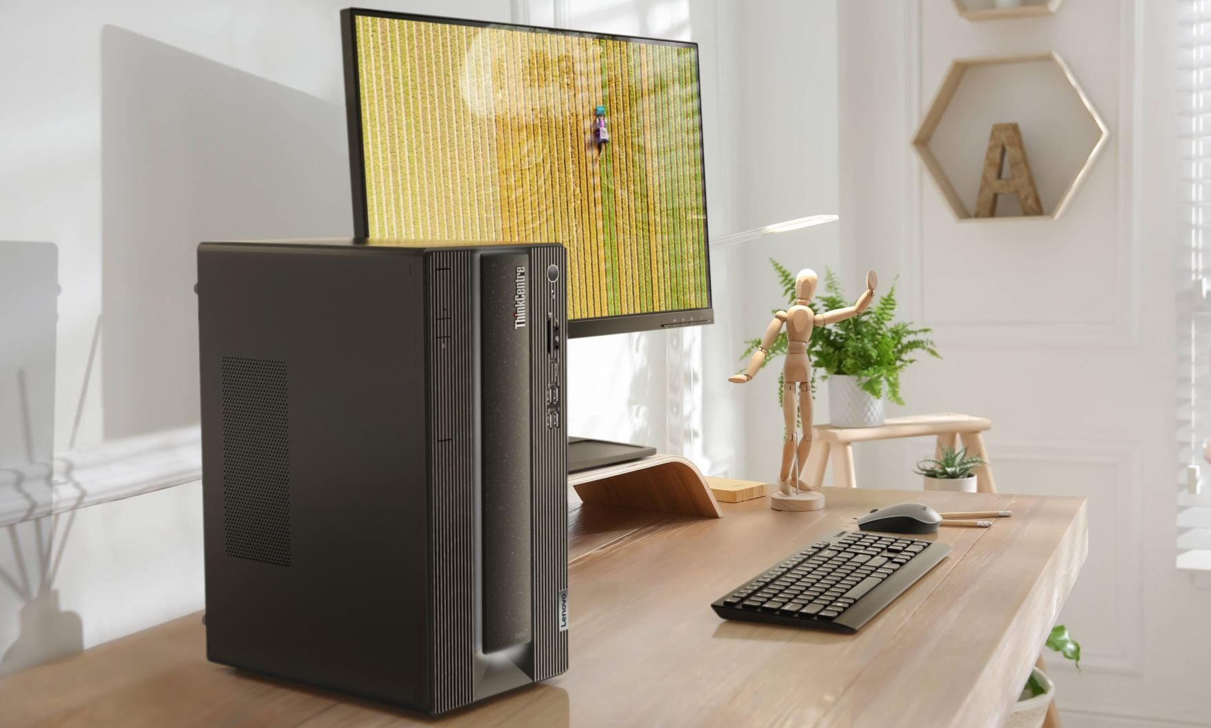 Zcela novou produktovou sérii ThinkCentre neo na veletrhu představila společnost Lenovo. Zástupci řady ThinkCentre neo přicházejí ve stylovém a minimalistickém designu a se speciální povrchovou úpravou. Za pozornost v souvislosti s touto sérii stojí také využití plastů, které by jinak skončily v oceánech, na balení i samotných počítačích. Lenovo do nové série aktuálně zařadilo tři modely, konkrétněji dva stolní počítače a jedno PC typu all-in-one. Desktop ThinkCentre neo 70t, vhodný pro náročnější uživatele, nabídne až 128 GB paměti DDR5, grafiku Nvidia RTX 3060 Ti s certifikací Nvidia Studio a úložiště složené až ze 2TB HDD a 1TB SSD. Pokročilí uživatelé jistě ocení také režim Smart Cable, který umožňuje na jedné obrazovce ukazovat obsah ze dvou zařízení, nebo funkce Smart Storage pro automatické bezpečné zálohování dat a přístup k nim z více zařízení. U modelu ThinkCentre neo 50skladl výrobcedůrazna kompaktní rozměry. Navzdory objemu 7,4 litru však výrobce nebyl nucen dělat výraznější kompromisy ve výkonu ani dalších vlastnostech. ThinkCentre neo 30a 24 je kolaborativní all-in-one desktop s 23,8" Full HD displejem, zvukem od Harmanu a výsuvnou webovou kamerou. Dodávaný software AI Meeting Manager nabízí překladač v reálném čase, převod hlasu na text, titulky, editor poznámek ze schůze a hlasovou interakci s Amazon Alexa. Lenovo Smart Appearance pak při videokonferencích vylepšuje rysy obličeje a rozmazává pozadí.