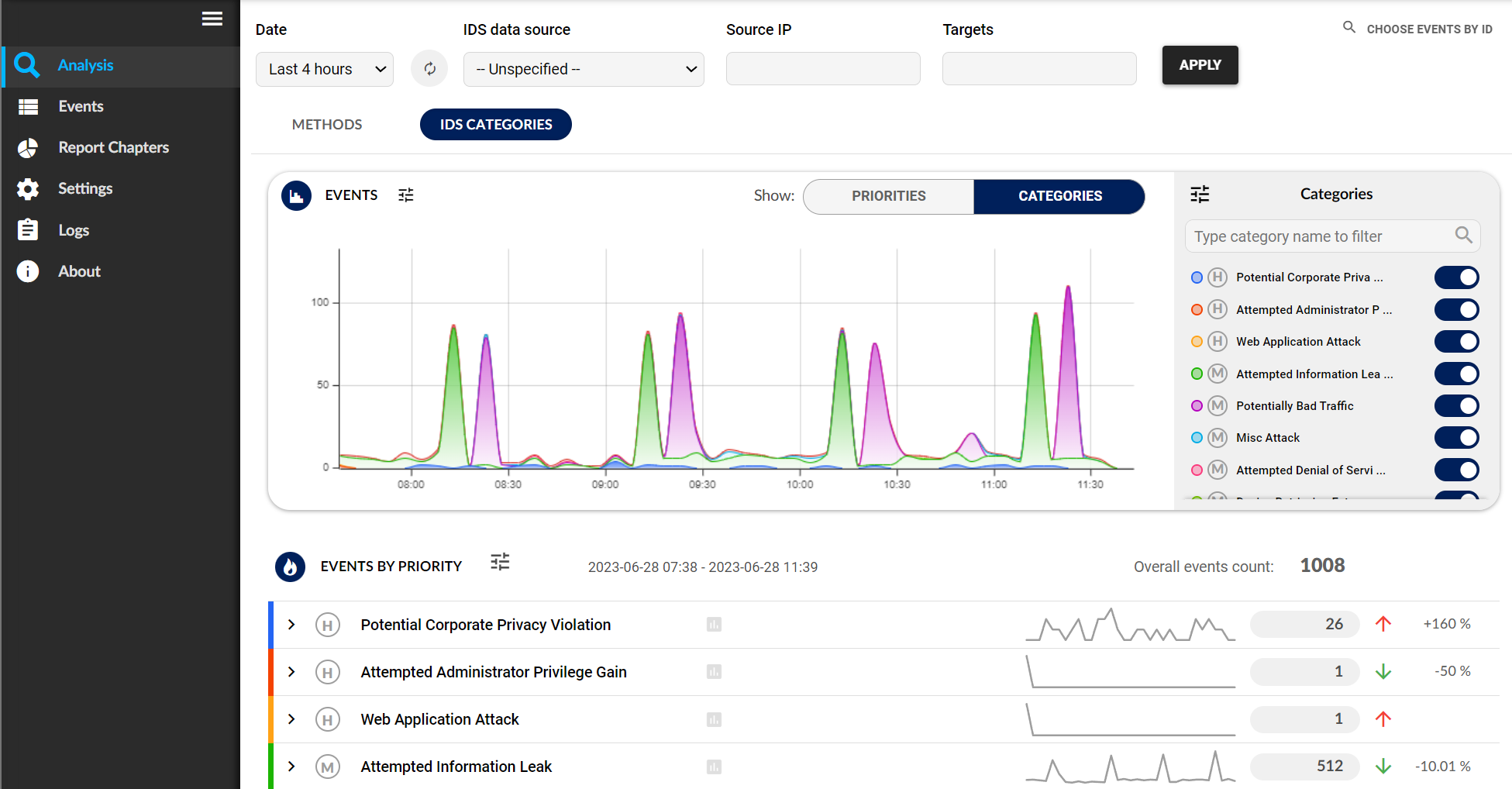 - Aktualizovanou vizualizaci a analýzu událostí v IDS (Intrusion Detection System) - spojuje události založené na signaturách do jednotného uživatelského rozhraní společně s událostmi založenými na chování, a to včetně podrobného zobrazení, evidence událostí, dashboardů a reportů.