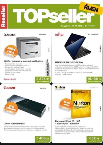 Jako každý měsíc i v říjnu vyšel produktový leták pro prodejce vydávaný samostatně Reseller Magazinem a poskytovaný prodejcům ZDARMA. Říjnové vydání bylo připraveno ve spolupráci s 22 výrobci produktů výpočetní techniky, software a spotřební elektroniky. Leták můžete použít libovolně k podpoře prodeje ve své prodejně nebo ve svém regionu například formou roznosu letáků opatřených razítkem do schránek, rozesláním svým stálým zákazníkům apod.