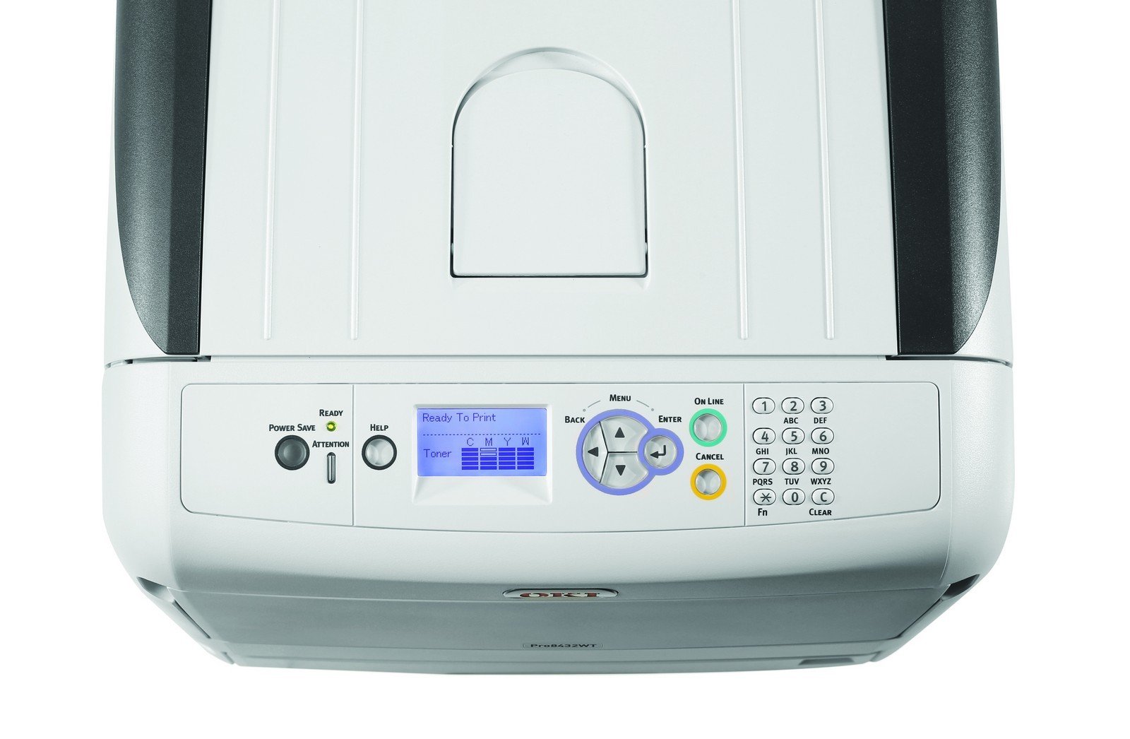 Model Oki Pro8432WT je zástupcem nové generace LED tiskáren Oki formátu A3 s bílým tonerem. Díky transferovým materiálům potiskne širokou škálu povrchů včetně bavlny, skla, kovu či dřeva.