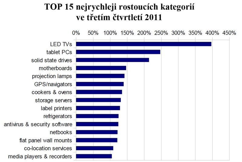 Nejrychleji rostoucí kategorií jsou LED televize (+397 procent), které začínají zcela jasně nahrazovat starší televizní technologie. Ty se ostatně nacházejí i pod palbou z počítačového světa – PC televizní tunery také významně rostou (+101 procent).