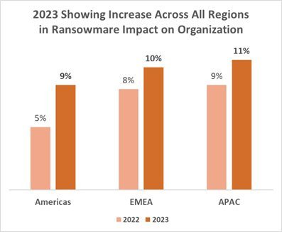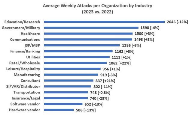 Terčem ransomwarového útoku se v roce 2023 po celém světě stalo deset procent organizací, což je nejvíce za posledních několik let. Mezi nejvíce zasažená odvětví patří vzdělávání a výzkum, kde ransomwarovému útoku čelilo 22 % organizací. Následuje státní správa a vojenský sektor s 16 % a zdravotnictví s 12 %.