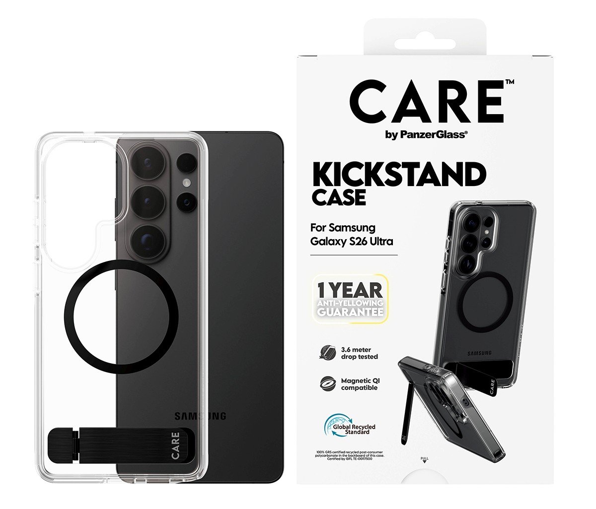 Telefony Samsung řady S26 se dočkají celé řady krytů z produktové řady PanzerGlass CARE. Samozřejmostí je oblíbený kryt CARE Urban s roční zárukou proti žloutnutí (také ve variantě s otočným stojánkem CARE Kickstand). Dále v nabídce nechybí na podzim představené kryty CARE Flow. Novinkou je CARE SL1M (Slim), který zeštíhlil na pouhý jeden milimetr. Vyroben je ze 100 % recyklovaných plastů a nabízí taktéž roční záruku proti žloutnutí.