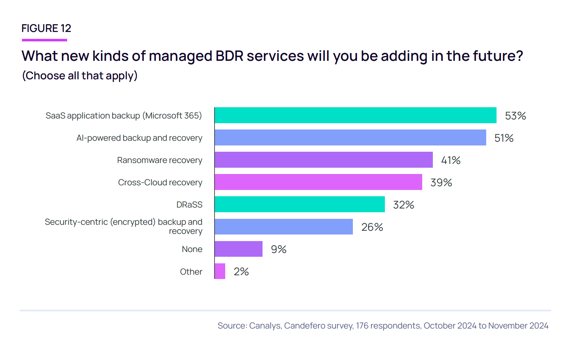 - Nejžádanějšími službami v segmentu řízeného zálohování a disaster recovery jsou zálohování SaaS aplikací (53 %) a zálohování a obnova s podporou AI (51 %).