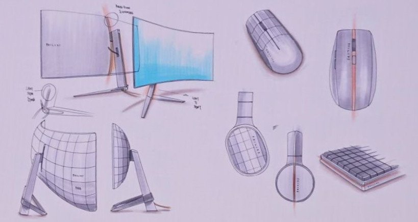 Evnia přináší kombinaci svěžího designu, prémiového provedení i výbavy a elegance, kterou dokresluje například zadní osvětlení Ambiglow (jde o podobnou technologii, jakou je Ambilight u televizů téže značky). Sofistikovaný, avšak univerzální design produktů se hodí do každého prostředí a je vhodný pro příležitostné hráče i náročné členy e-sportových organizací.