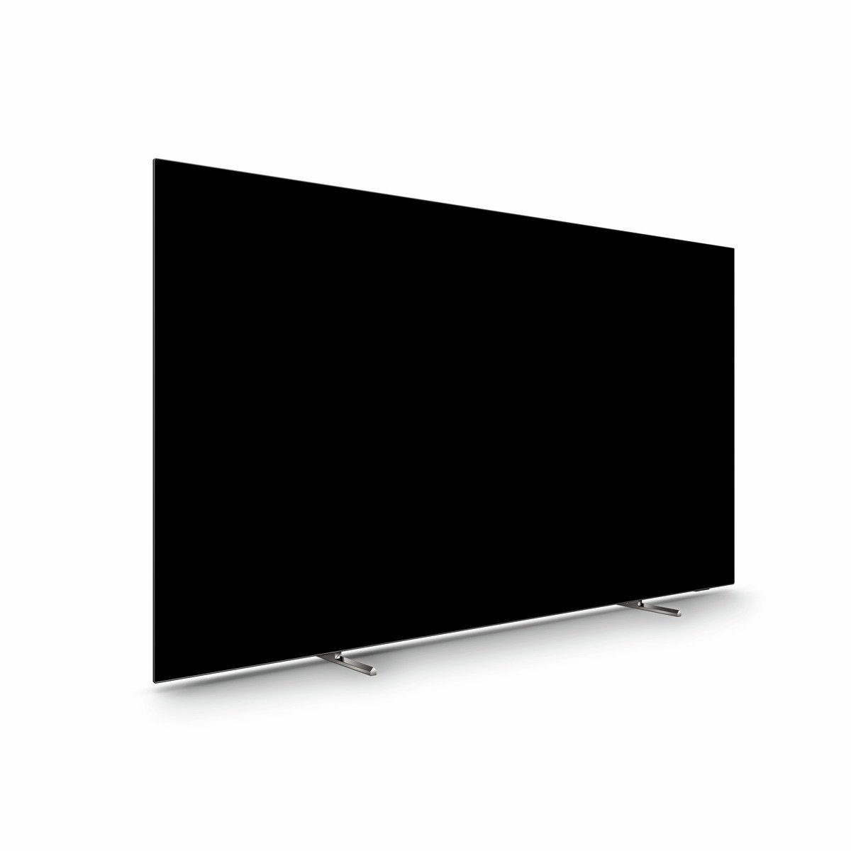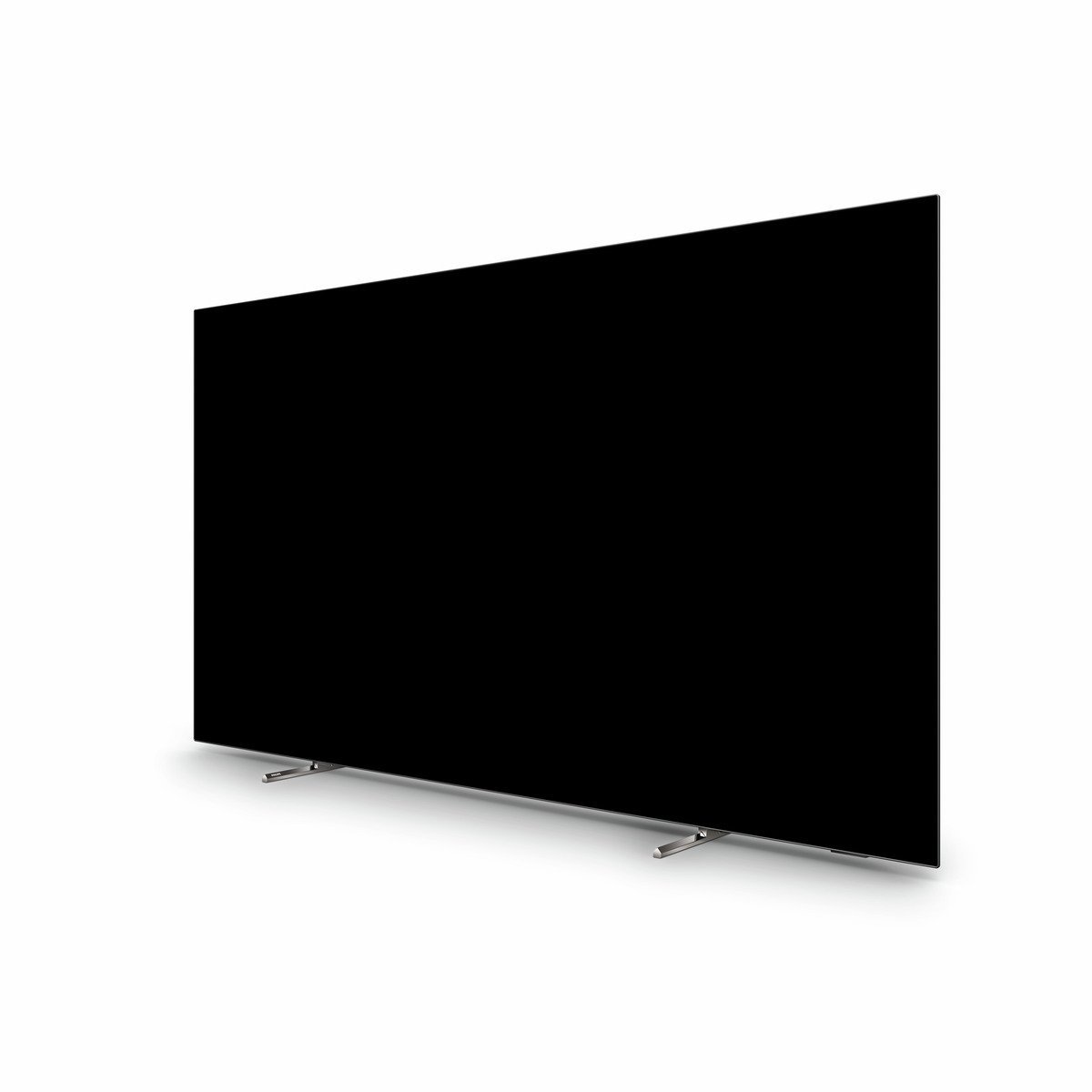 Styl televizoru propůjčují ultratenký kovový rámeček a chromové nožky s tmavou saténovou povrchovou úpravou.