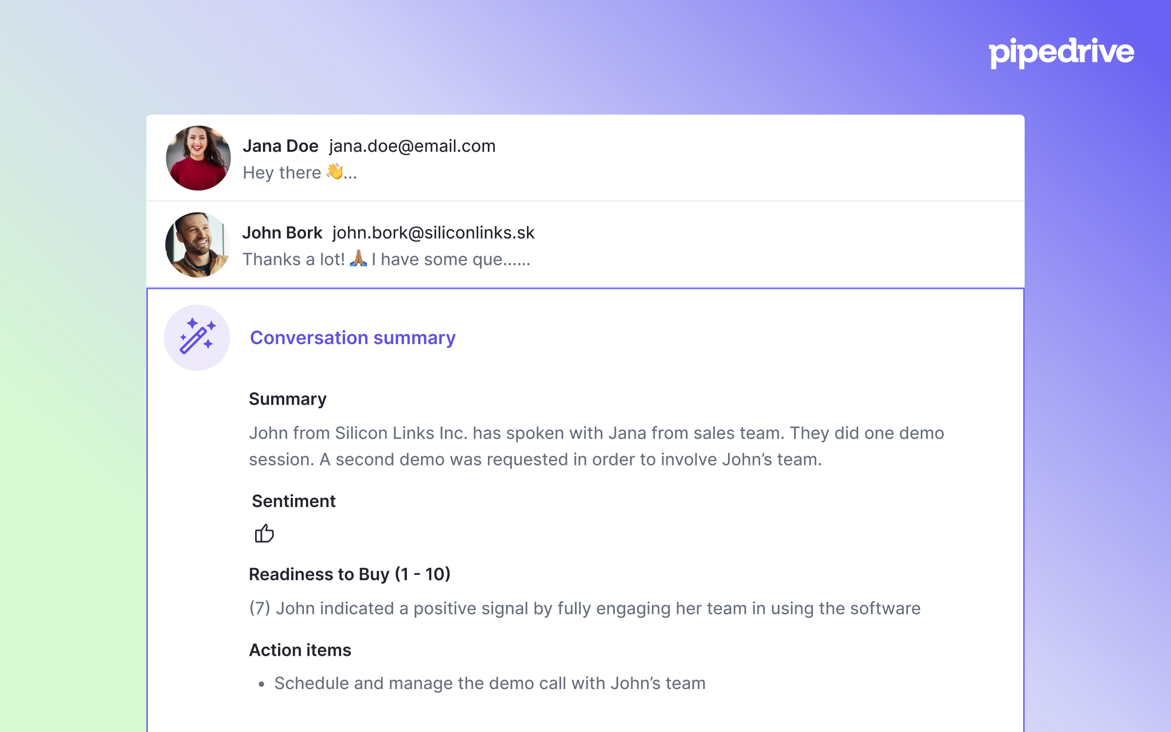 Pipedrive představil pilotní verzi svého řešení s AI agenty. Navržené je tak, aby zvyšovalo efektivitu obchodních procesů a zlepšovalo uživatelský zážitek. Nový AI agent dokáže samostatně vytvářet personalizovaný e-mailový obsah, který posouvá obchodní jednání, shrnovat předchozí komunikaci, vysvětlovat doporučené formulace a zvýrazňovat nejdůležitější e-maily, aby žádná klíčová příležitost neunikla pozornosti.