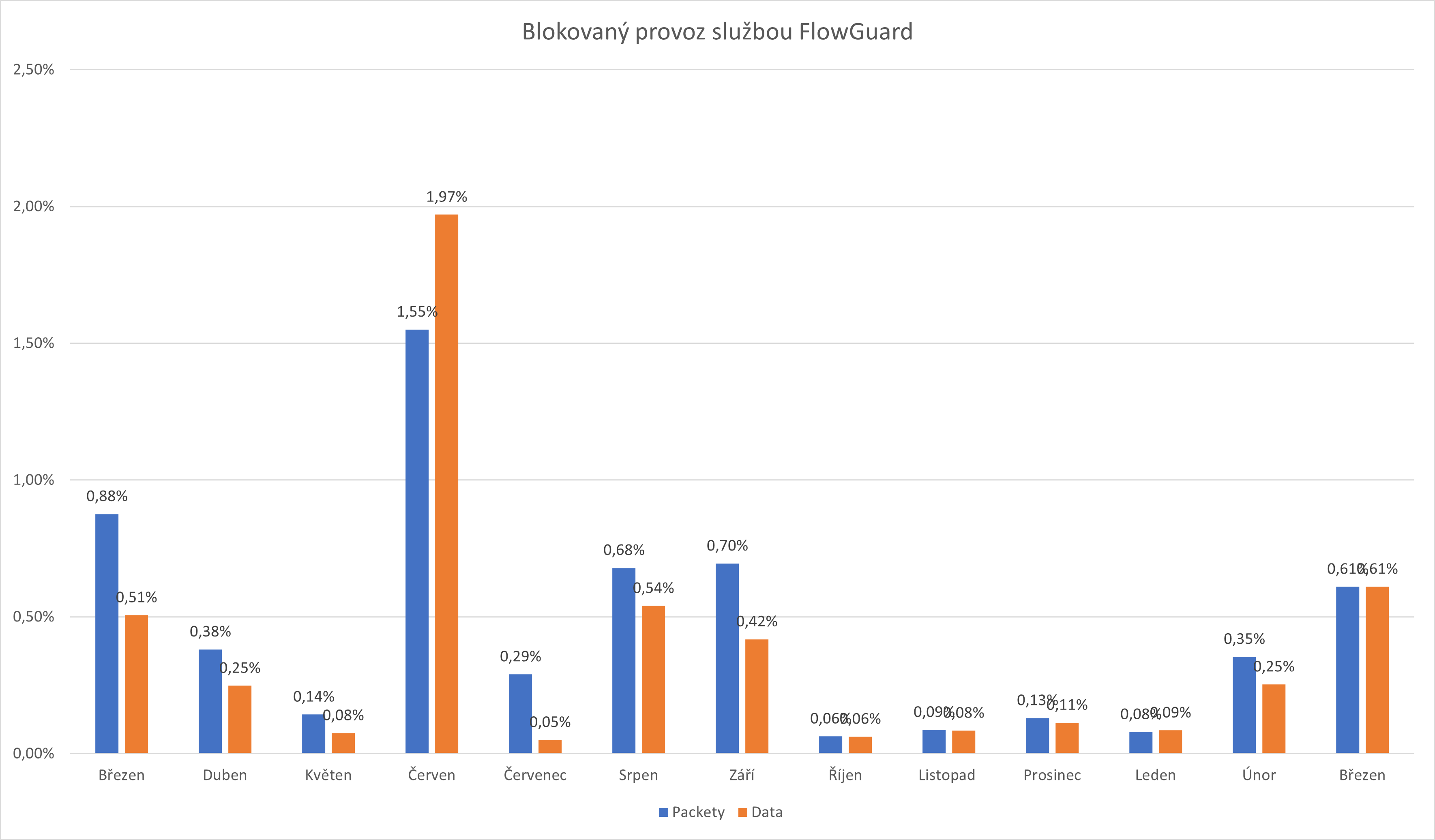 Údaje vyplývají z pravidelné měsíční analýzy statistik provozu služeb FlowGuard české společnosti ComSource, která se zaměřuje na kyberbezpečnost, síťovou infrastrukturu a datovou analytiku.