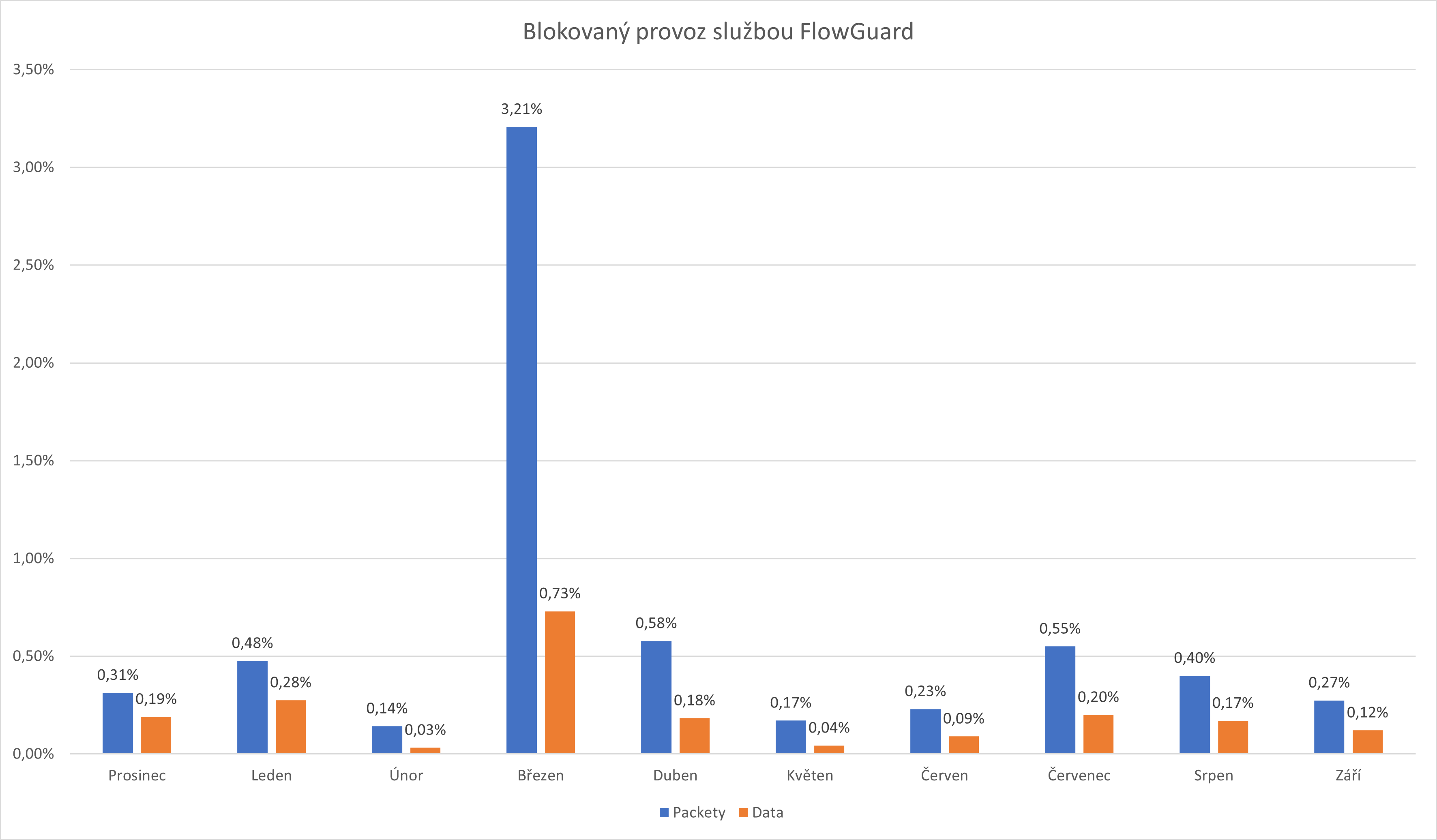 Podle přehledu DDoS útoků zachycených službami FlowGuard společnosti ComSource v září dosáhl počet zemí, ze kterých na firmy a instituce v České republice útoky mířily, hodnoty 187. Žebříčku intenzity útoků již třetí měsíc po sobě kraluje Asie, předtím dlouhodobě vedla Evropa. Asie je první i v pořadí podle nejčastějšího zdroje útoků. Celkový objem odfiltrovaného škodlivého provozu se v září v porovnání s předchozím měsícem lehce snížil. V rekordním březnu byl objem zablokovaných škodlivých dat, která nebyla vůbec doručena do sítě uživatelů, mnohonásobně vyšší.
