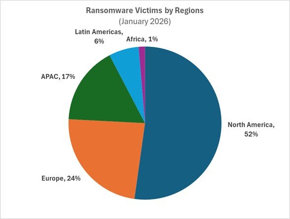 V lednu bylo na stránkách ransomwarových gangů veřejně vydíráno 678 společností, což je sice výrazný pokles oproti prosinci, ale zároveň jde o meziroční nárůst o deset procent. Více než polovina obětí (52 %) pochází ze Severní Ameriky, 24 % obětí je z Evropy, kde jsou hlavním terčem společnosti ve Velké Británii, Německu, Itálii a Španělsku.