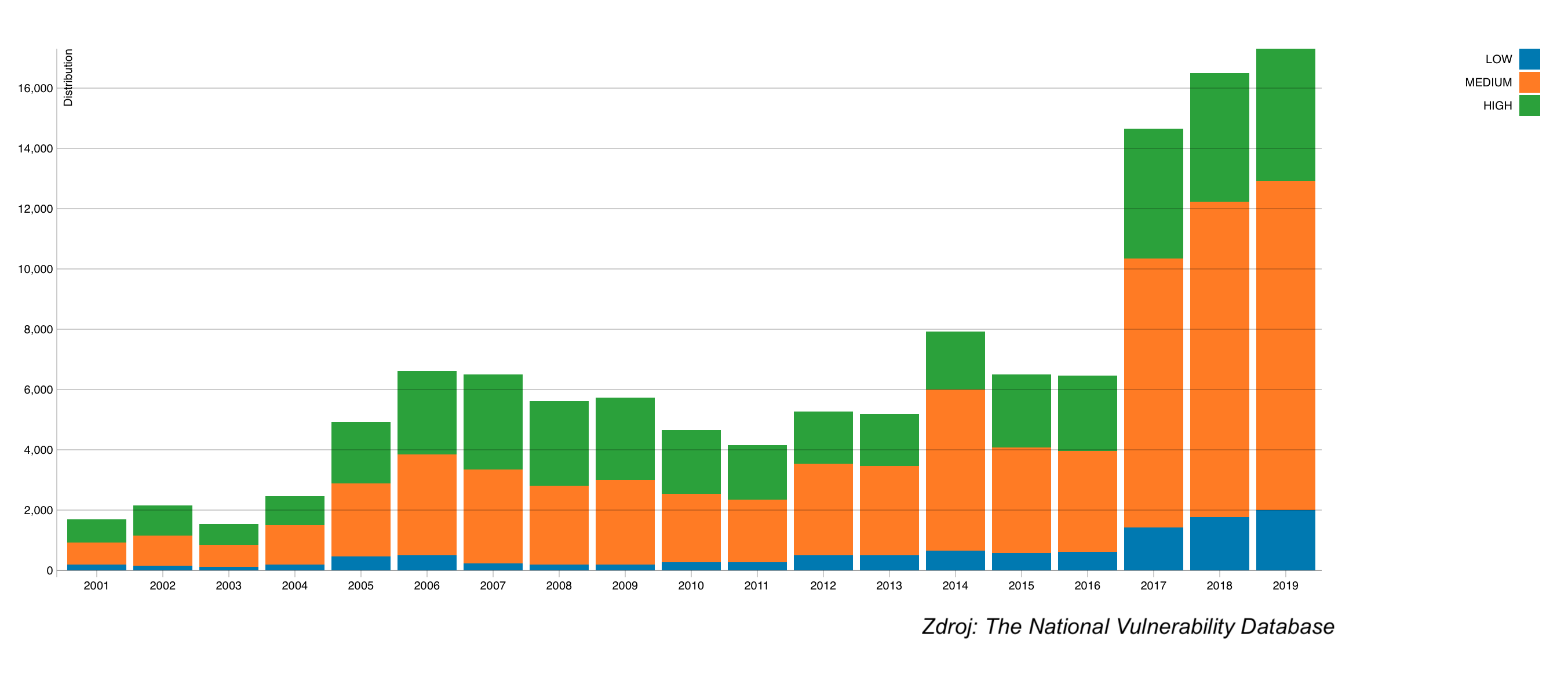 Počet zjištěných zranitelností v roce 2019 vzrostl o dalších 5 %
