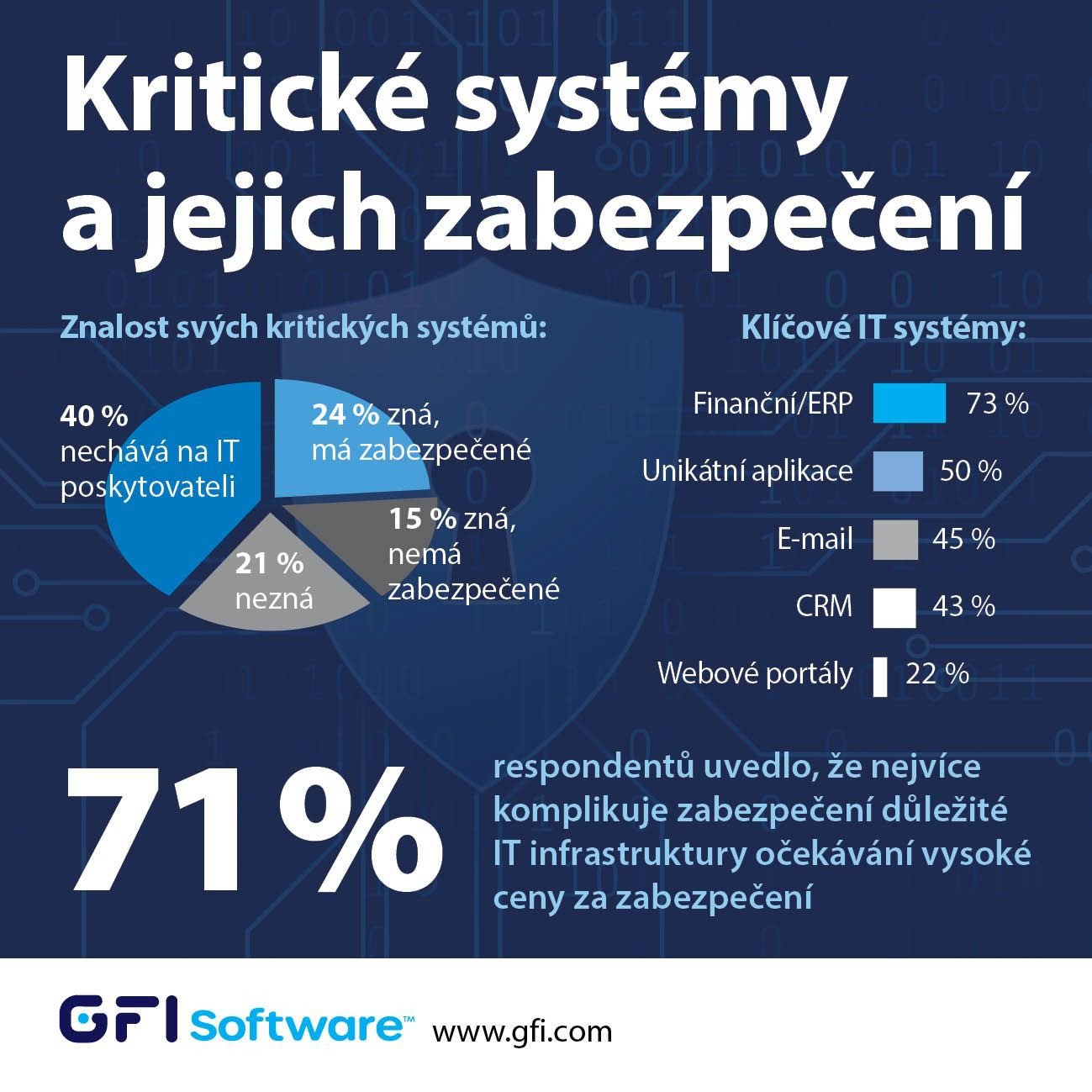Podle průzkumu společnosti GFI Software provedeného mezi českými a slovenskými partnery má pouze čtvrtina firem povědomí o tom, které systémy jsou kritické, a má je zabezpečené. Nejvíce dotázaných uvedlo, že to jsou především finanční/ERP systémy a unikátní aplikace, bez jejichž fungování by vznikly největší škody.