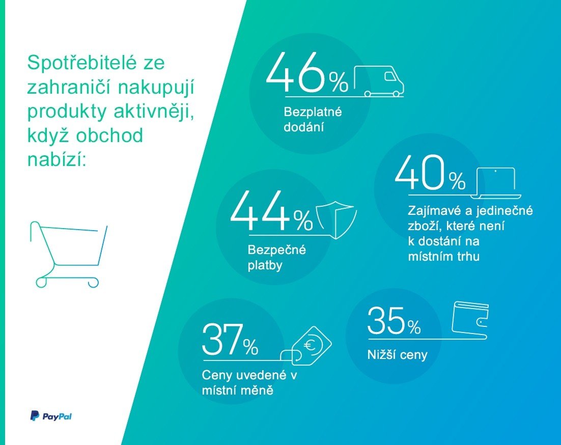 Průzkum společností PayPal a Ipsos odhalil, že hlavními důvody spotřebitelů po celém světě pro nakupování v zahraničí jsou lepší ceny, zájem o zboží nedostupné v jejich vlastní zemi a možnost objevit nové a zajímavé produkty. Co motivuje k nakupování v zahraničí Čechy a jak mohou naopak čeští prodejci přilákat zahraniční zákazníky?