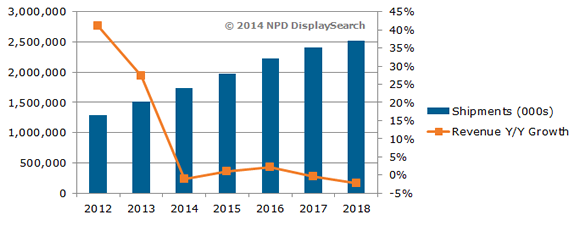 Ačkoli prodej chytrých telefonů i tabletů nadále roste, mezi výrobci komponent panuje stále tvrdší konkurence, což po čtyřech letech v tomto sektoru vede k poklesu tržeb. Ještě v roce 2013 přitom v porovnání s rokem 2012 vzrostl prodej o 17 % a tržby výrobců o 27 %. V roce 2014 se však již počítá pouze s růstem vyrobených kusů (o 15 %), avšak doprovázeným jednoprocentním poklesem tržeb.