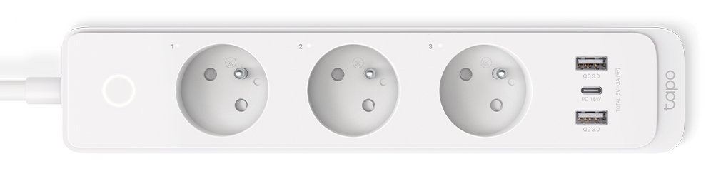 Chytrá vícenásobná prodlužovací zásuvka disponuje třemi zásuvkami pro spotřebiče, dvěma klasickými USB-A porty s nabíjecím standardem QC 3.0 a jedním portem USB-C s podporou rychlého 18W nabíjení PD.