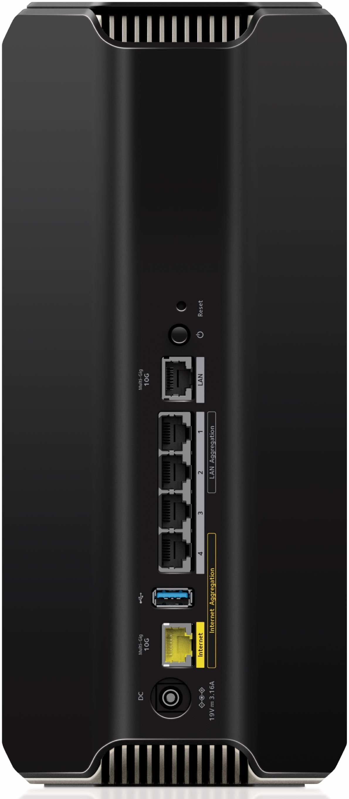 - Internetový port 10GbE je určen pro kabelové a optické připojení s rychlostí až 10 Gb/s. Dále má router k dispozici jeden 10 Gb/s a čtyři 1Gb/s LAN porty.