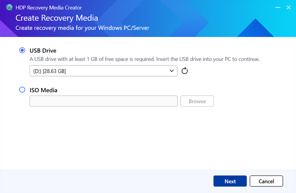 Klíčové vlastnosti HDP Recovery Media Creator