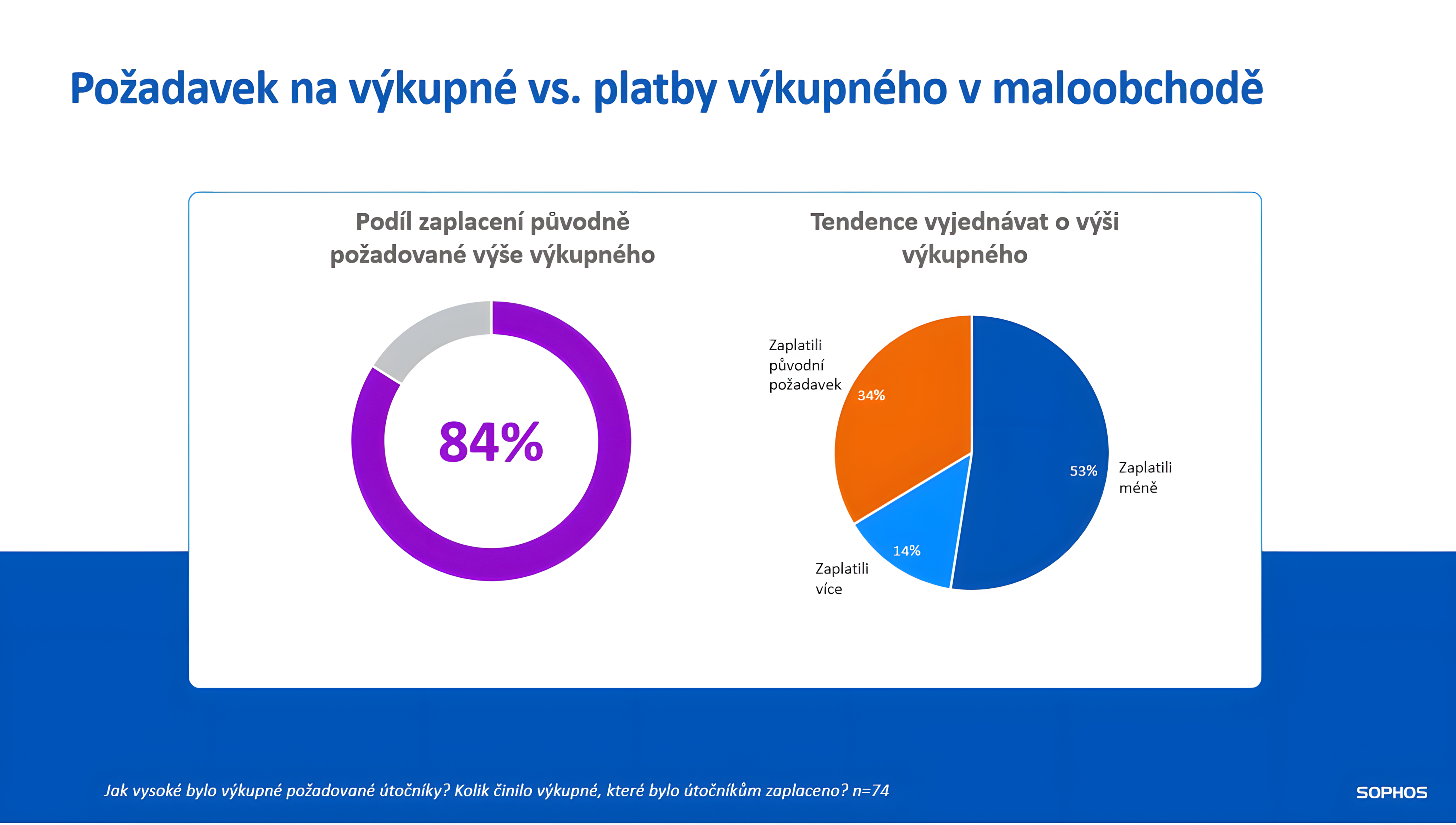 Nejnovější studie společnosti Sophos o zkušenostech maloobchodních organizací s ransomwarem popisuje celý proces útoku, od míry napadení a jeho příčiny až po dopady na provoz a obchodní výsledky. Letos studie zahrnuje i nové oblasti zkoumání, včetně požadavků na výkupné oproti skutečným platbám výkupného nebo jak často maloobchodní organizace získávají při nápravě útoků podporu od vyšetřovatelů.