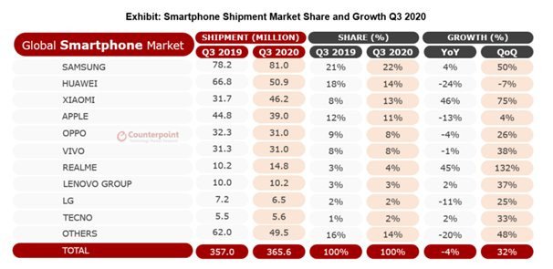 Společnost realme byla označena za nejrychleji rostoucí značku, která dosáhla milníku 50 milionů prodaných chytrých telefonů. Označení vychází z dat zprávy Counterpointu o dodávkách chytrých telefonů za třetí kvartál letošního roku.