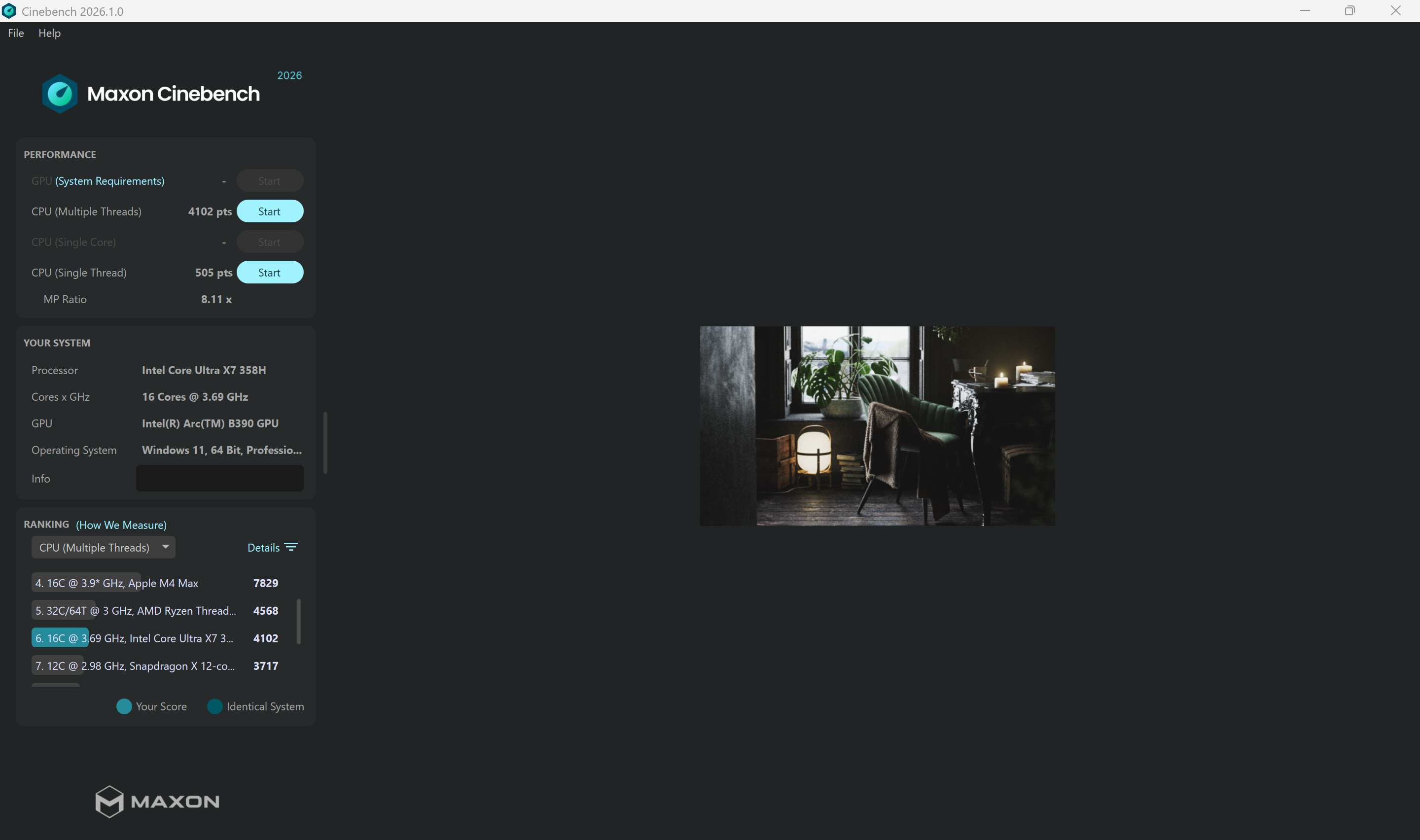 ASUS ExpertBook Ultra v naší konfiguraci disponoval procesorem Intel Core Ultra X7 358H se 16 jádry a výchozí frekvencí 1,9 GHz (krátkodobě až 4,8 GHz). Součástí procesoru je integrovaný grafický čip Intel Arc B390 a NPU čip Intel AI Boost s výkonem 50 TOPS (celkem notebook nabízí výkon až 180 TOPS).