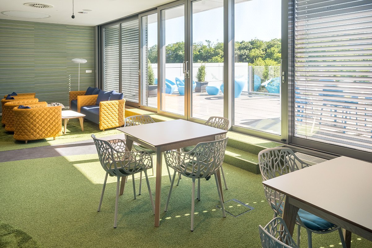 Tématem, které sjednocuje budovu po designové stránce, jsou čtyři roční období – barvy a obrazy odrážející jaro, léto, podzim a zimu byly i ústředním motivem fotografické soutěže, která proběhla mezi zaměstnanci a spolupracovníky, a v níž mohli účastníci navrhovat i vybírat obrazy, které chtějí pro výzdobu budovy použít.