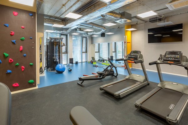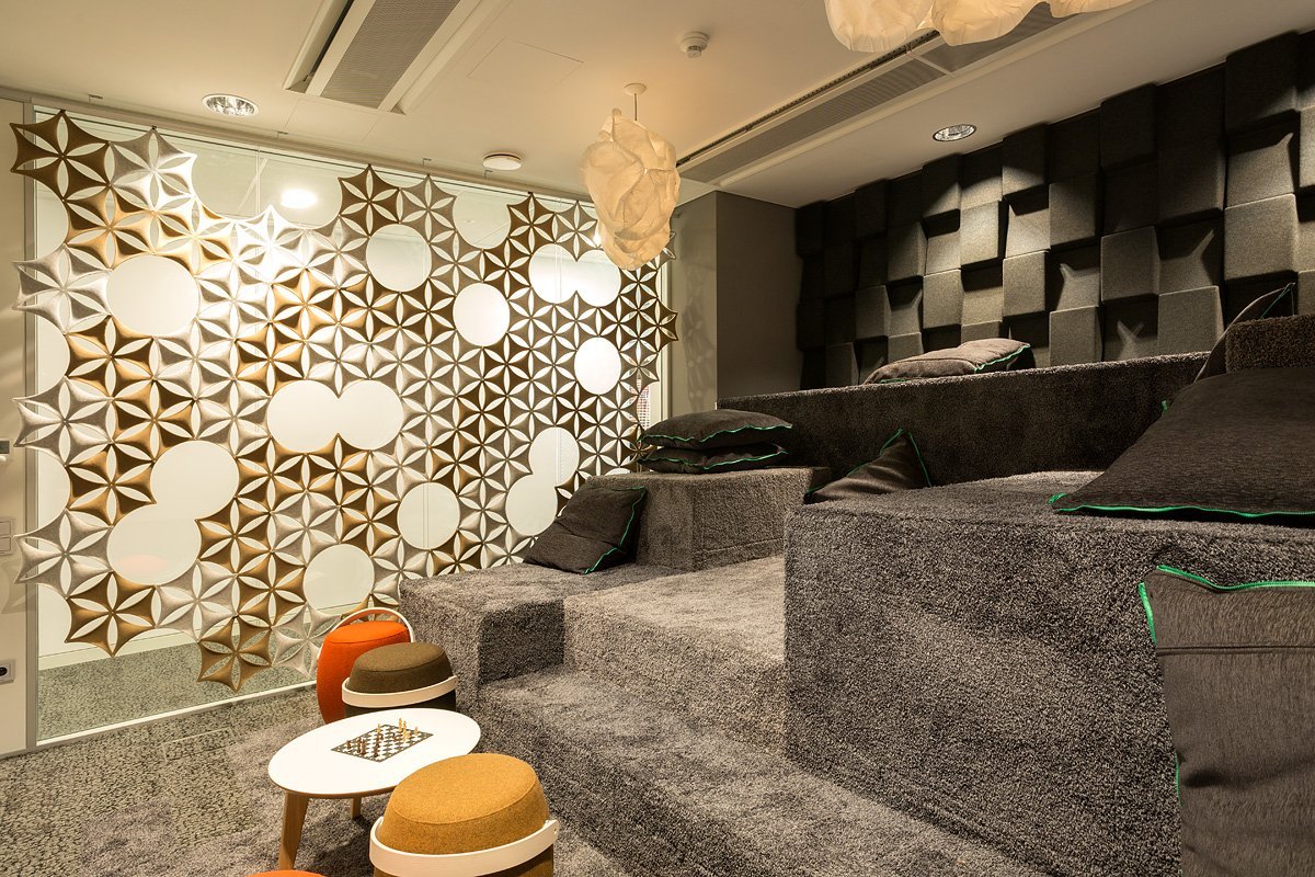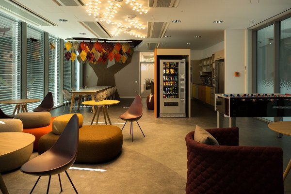 Budova disponuje 70 různými typy prostor pro vzájemná setkávání, včetně místností pro oddělená jednání, projekčních prostor, konferenčních prostor všech tvarů a velikostí, telefonních budek, knihovny s krbem a atraktivních relaxačních prostor. V budově se rovněž nalézá rozsáhlá tělocvična, wellness a hygienické zázemí. Sportovně založení pracovníci mohou využívat i uzamykatelnou místnost pro jízdní kola.