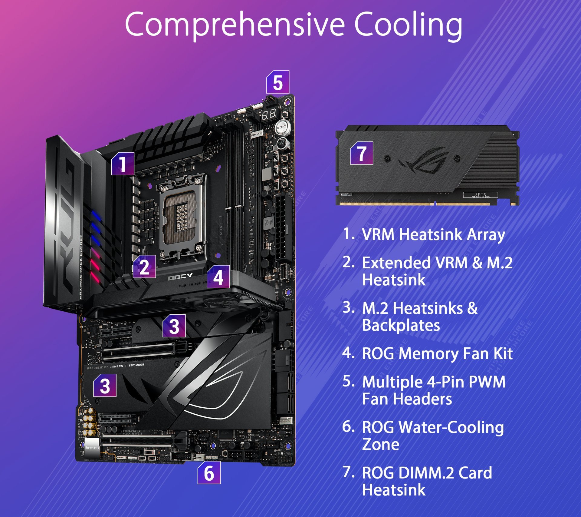 Nejnovější základní desky Z790 ROG Maximus a ROG Strix posouvají optimalizaci paměti o krok dál díky funkci DIMM Flex. Stejně jako CPU a GPU, i paměťové moduly DDR5 při zátěži generují teplo, zejména když jsou přetaktované. Stejně jako u ostatních komponent nemusejí uživatelé získat plný výkon svých pamětí DDR5, pokud se s tímto teplem efektivně nevypořádají.