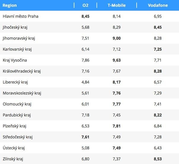 Podle měření za uplynulý rok vyplývá, že mobilní operátoři postupně 3G vysílače nahrazovaly technologií LTE. V roce 2016 měl podle měření DSL.cz nejlepší 3G síť operátor T-Mobile. Podrobné srovnání naměřených hodnot v jednotlivých krajích za rok 2016 naleznete v tabulce níže.