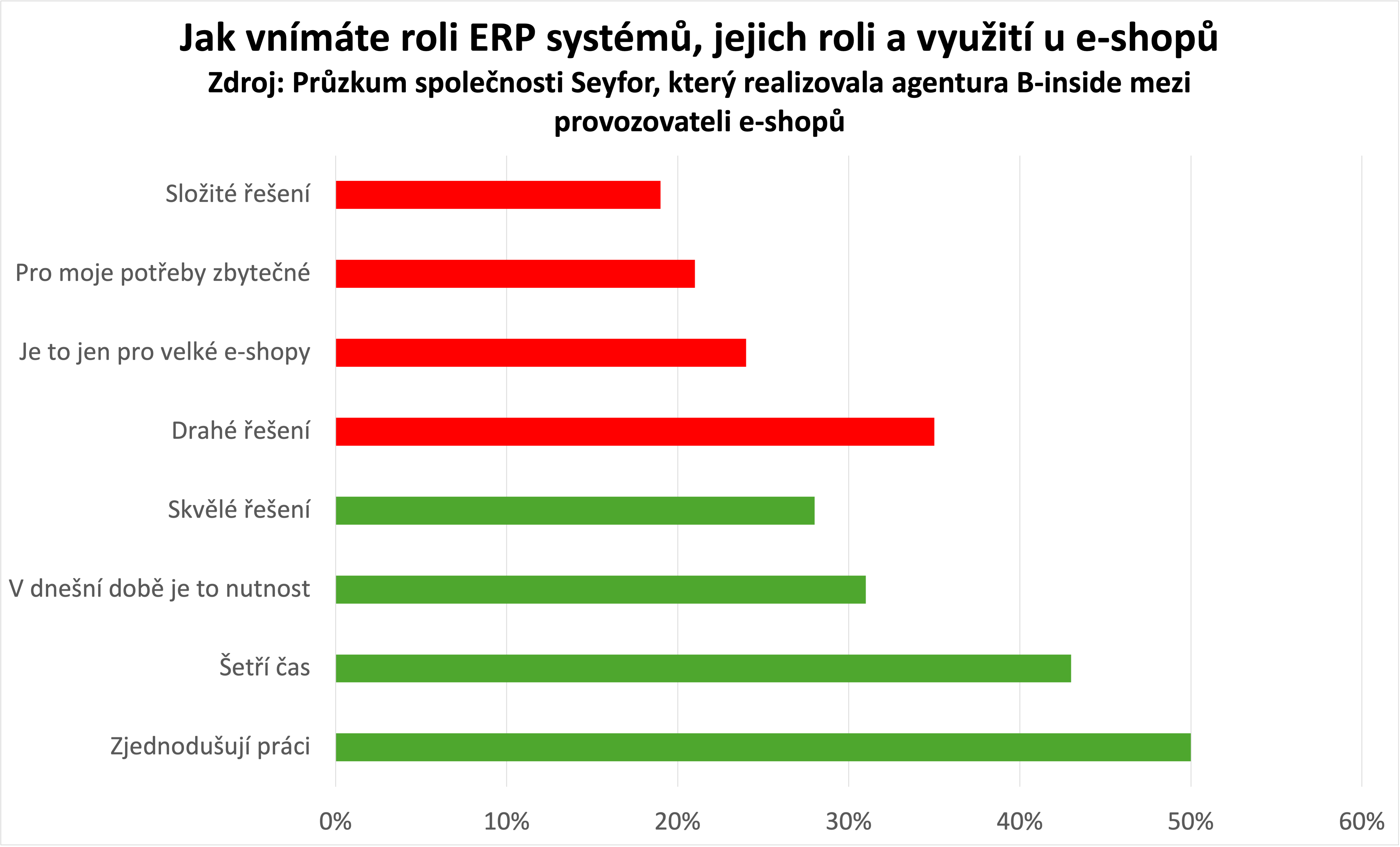 „Tento pohled se promítá i do vnímání přínosů. Více než třetina respondentů považuje ERP systémy za zbytečně drahé nebo složité, zejména pokud je zatím sama nevyužívá. Naopak mezi většími e-shopy, které již ERP mají, převládá názor, že jde o nezbytný nástroj pro další růst a udržení kontroly nad provozem,“ konstatoval Komárek.