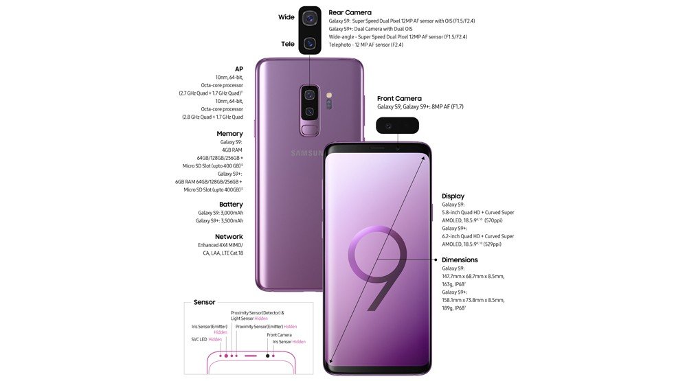 Smartphony Samsung Galaxy S9 a S9+ navazují na své předchůdce, jejichž možnosti rozšiřují například fotoaparátem s variabilní clonou a superzpomaleným snímáním, stereofonními reproduktory s puncem AKG, rozšířenými možnostmi biometrické autentizace, novou generací bezpečnostní platformy Knox nebo optickým snímačem schopným posoudit srdeční zátěž uživatele.