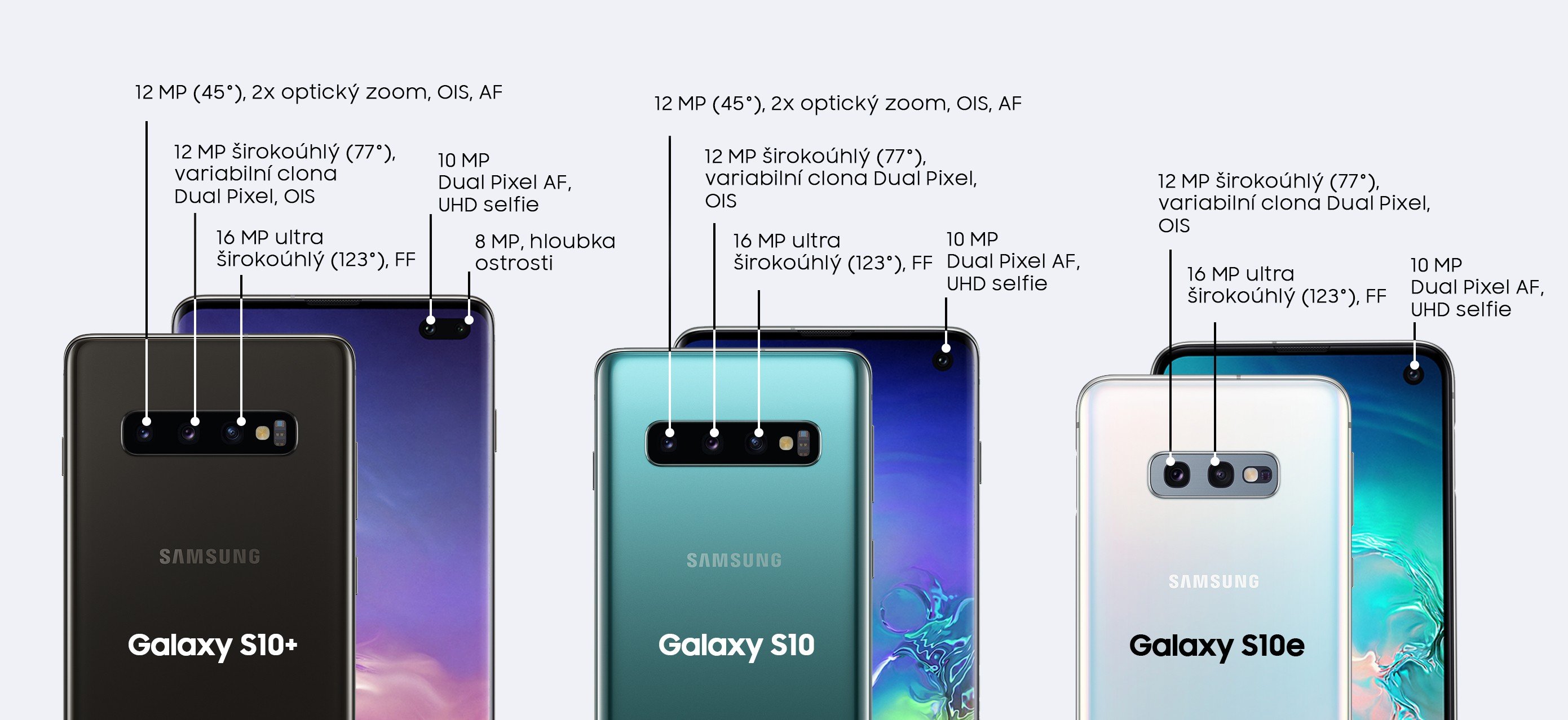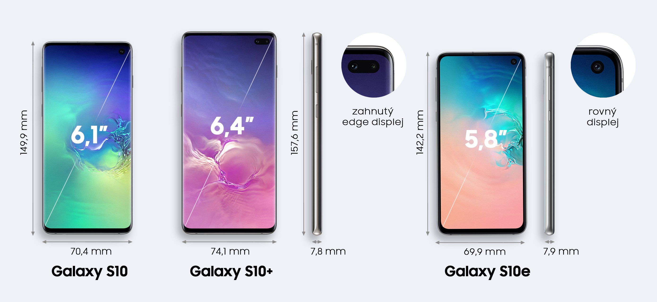 Galaxy S10 je vyústěním deseti let inovací. Byl navržen pro ty, kdo chtějí prémiový telefon s vysokým výkonem, a vytváří prostor pro novou generaci mobilních zážitků. Galaxy S10+ potěší zejména spotřebitele, kteří se spokojí pouze s takovým zařízením, které je doslova napěchováno funkcemi, protože posunuje na novou úroveň prakticky všechny parametry – počínaje displejem, přes fotoaparát až po výkon. Galaxy S10e byl vytvořen pro ty, kdo chtějí získat všechny nezbytné atributy prémiového telefonu v kompaktním přístroji s plochým displejem. Řada Galaxy S10 přichází se zcela novým dynamickým displejem AMOLED, fotoaparátem nové generace a inteligentně řízeným výkonem. Nabízí spotřebitelům více možností volby a nastavuje v oblasti chytrých telefonů nový standard.