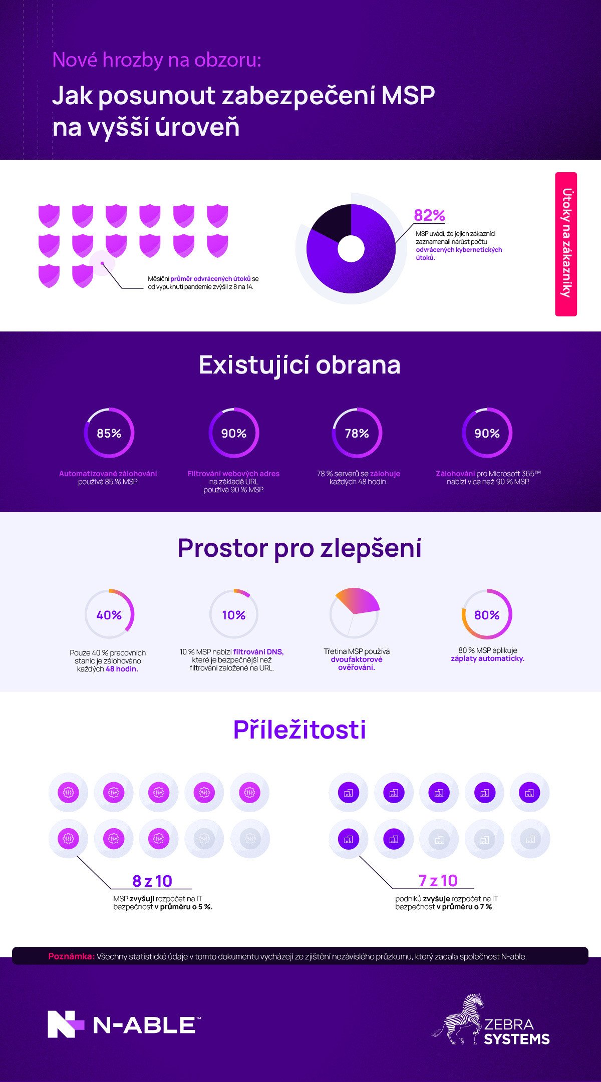 Podle průzkumu společnosti N-able plánuje 7 z 10 SMB zákazníků poskytovatelů řízených služeb (MSP) kvůli prudkému růstu kybernetických útoků zvýšení IT rozpočtů. Nárůst útoků na své klienty registruje 82 % poskytovatelů.