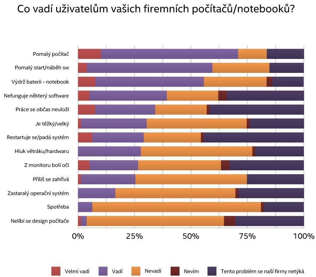 Podle průzkumu společnosti Intel frustruje české uživatele firemního IT pomalý počítač. Čekání u počítače vadí v České republice 70,9 % uživatelů počítačů ve firmách. Dále následují pomalý start a náběh programů, který irituje 59,5 % uživatelů, a pro 55,7 % uživatelů je to malá výdrž u baterií notebooků. Na Slovensku frustruje pomalý počítač stejnou měrou jako pomalý start některých programů (64,3 %).