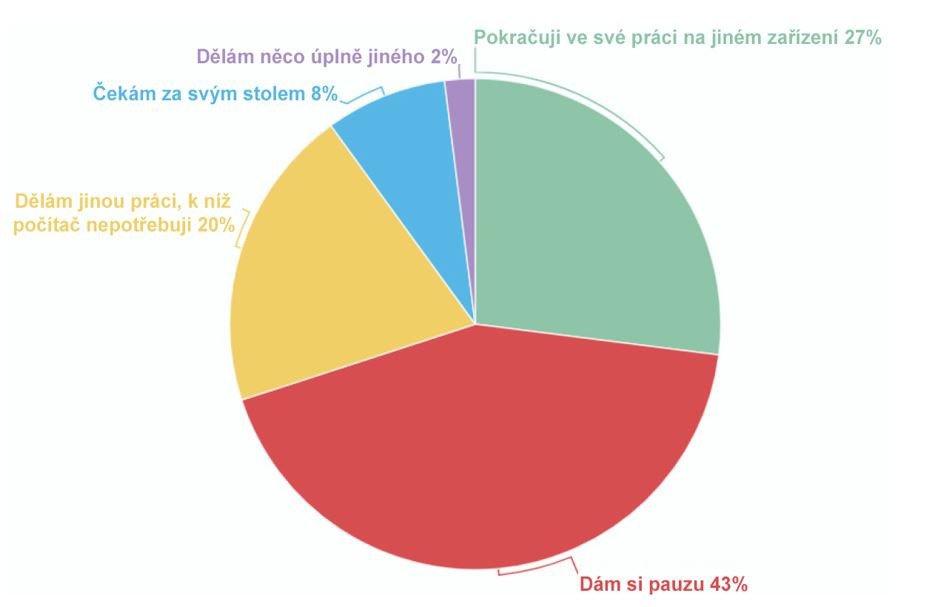 Zaměstnanci si přejí mít možnost aktualizace odmítnout nebo odsunout, protože se obávají, že by jim čas jim věnovaný narušil jejich pracovní produktivitu. Víc než polovina respondentů uvedla, že jim aktualizace skutečně narušují práci: 43 % musí vynuceně přerušit to, na čem pracovali, zatímco 8 % v klidu vyčká u svého pracovního stolu, dokud aktualizace neproběhne. Potíže však nekončí okamžikem dokončení aktualizace, protože pro 36 % zaměstnanců je ztrátou času i učení se novinek, které obsahuje nová verze softwaru. Raději by se místo toho věnovali své práci.