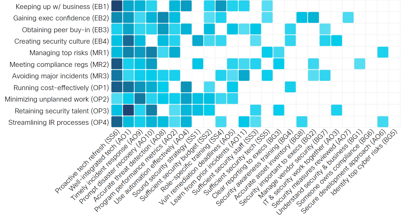Integrace je také nejvýznamnějším faktorem při budování kultury bezpečnosti v celé organizaci. Namísto tradičního bezpečnostního školení, které nevede k budování pozitivní kultury, je lépe investovat do technologií, které jsou flexibilní a bezproblémové. Pouhá znalost potenciálních bezpečnostních rizik jako samostatný faktor koreluje s celkovou úspěšností nejméně. To může překvapit, ale ukazuje to na důležitost komplexní informovanosti o hrozbách a programu řízení bezpečnostních událostí včetně schopnosti neutralizovat hrozby a napravovat škody. S celkovou úspěšností bezpečnosti naopak silně koreluje včasnost reakce na incidenty a přesnost detekce hrozeb.