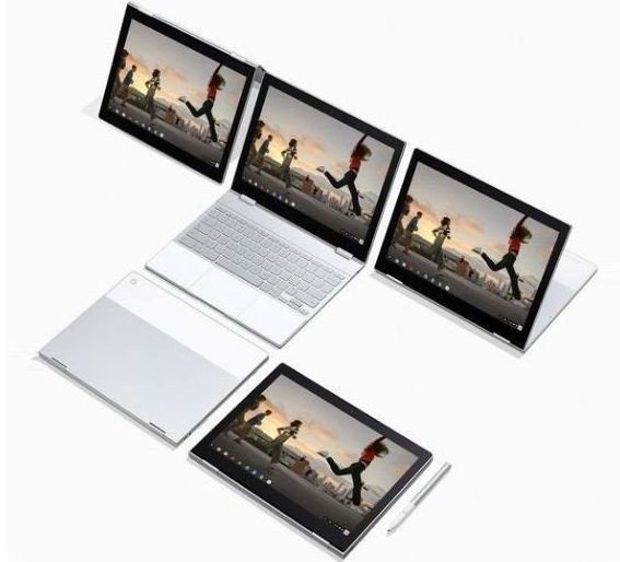 Přenosný počítač Pixelbook jasně cílí na náročnější klientelu. Jde o zařízení vybavené systémem ChromeOS a 12,3palcovým dotykovým displejem (rozlišení 2 400 x 1 600) v elegantním 1,1 kg vážícím kovovém těle. Uživateli se přístroj přizpůsobí díky čtyřem režimům použití. Zařízení využívá procesory Intel Core i5 nebo i7 doplněné až 16 GB RAM a 512GB SSD. Výhodou je možnost využívat aplikace z katalogu Google Play pro Android. Baterie zvládne až deset hodin práce na jedno nabití. Patnáct minut nabíjení by přitom měla vystačit na dvě hodiny provozu. Další výbava čítá webovou kameru (720p při frekvenci 60 fps), čip TPM, gyroskop, podsvícenou klávesnici nebo konektor USB-C.