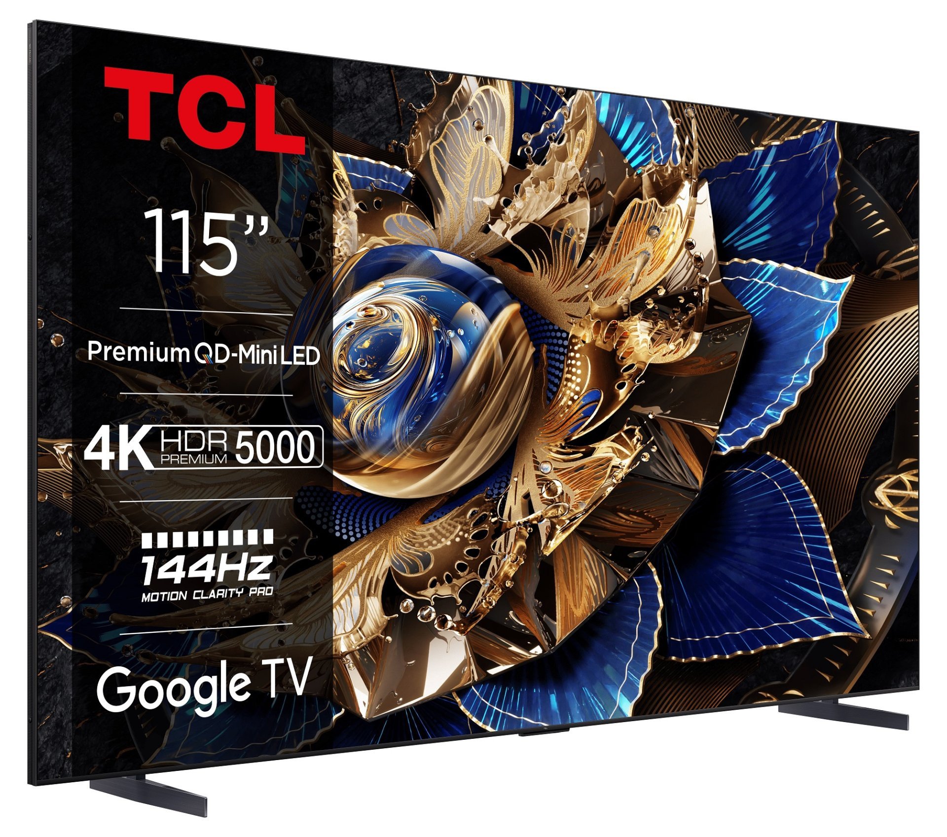 Společnost TCL se pyšní tím, že zpřístupňuje nejmodernější televizní technologie všem. Počínaje vlajkovou řadou TCL QD-Mini LED, v jejímž čele nově stojí 115" model TCL 115X955 Max. Skutečně obří 4K QD-Mini LED 144Hz televizor s Google TV a zvukovým systémem 6.2.2 Onkyo. Kombinace plnohodnotné 6. generace Mini LED s více než 20 000 zónami, QLED PRO, 4K HDR Premium 5000 a 144Hz Motion Clarity Pro nabízí přesné kontrasty a ostrý obraz v HDR kvalitě při dosud nevídané velikosti obrazovky. Aby toho nebylo málo, s Game Master Pro 3.0, HDMI 2.1, ALLM, FreeSync Premium Pro, TCL Game bar, 240Hz Game Accelerator a podporou všech nejnovějších formátů HDR je televizor ideálním společníkem pro sledování HDR filmů, streamování, sportovních přenosů a her. Tato největší QD-Mini LED televize na světě se prodává za doporučenou koncovou cenu 499 990 Kč (19 999 eur).