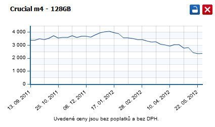 České ceny jsou tradičně vyšší. I u nás ovšem k poklesu došlo. Zatímco 128 GB SSD Crucial se na začátku roku prodával za 4 800 Kč, nyní stojí 2 850 Kč. Jeho cena tedy klesla o 40 procent.