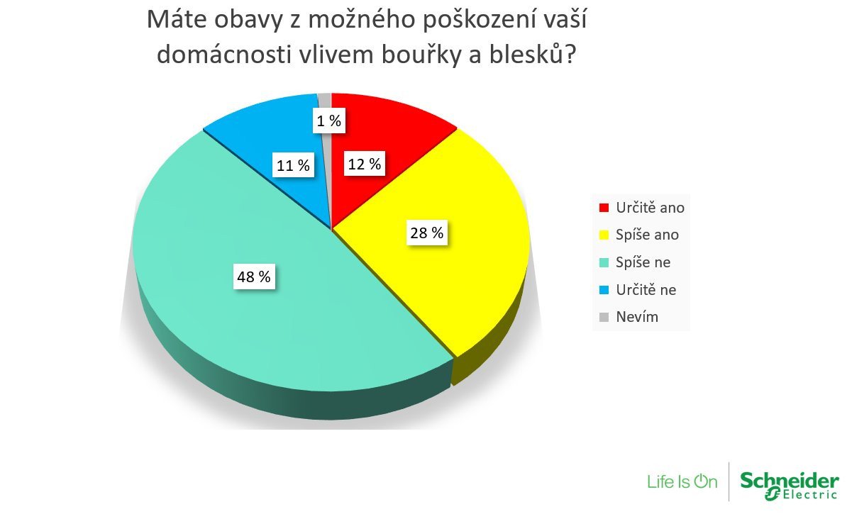 Každým rokem bouřky způsobí škodu za desítky tisíc korun. Podle České asociace pojišťoven bylo za loňský rok hlášeno 4 568 případů, kdy škodu na majetku způsobil úder blesku. A 15 374krát bylo hlášeno poškození majetku v důsledku přepětí v síti – počet těchto škod se meziročně zvýšil o 3,5 %. „Češi ale tato rizika stále podceňují. Že by mohla bouřka jejich domácnost poškodit, se obává jen 40 % z nich. Zároveň ale 88 % lidí přiznává, že zažili výpadek proudu, 25 % dokonce o nějaký spotřebič během silné bouřky přišlo a 40 % zaznamenalo kolísání napětí,“ uvedl Petr Baudyš z divize Secure Power společnosti Schneider Electric.