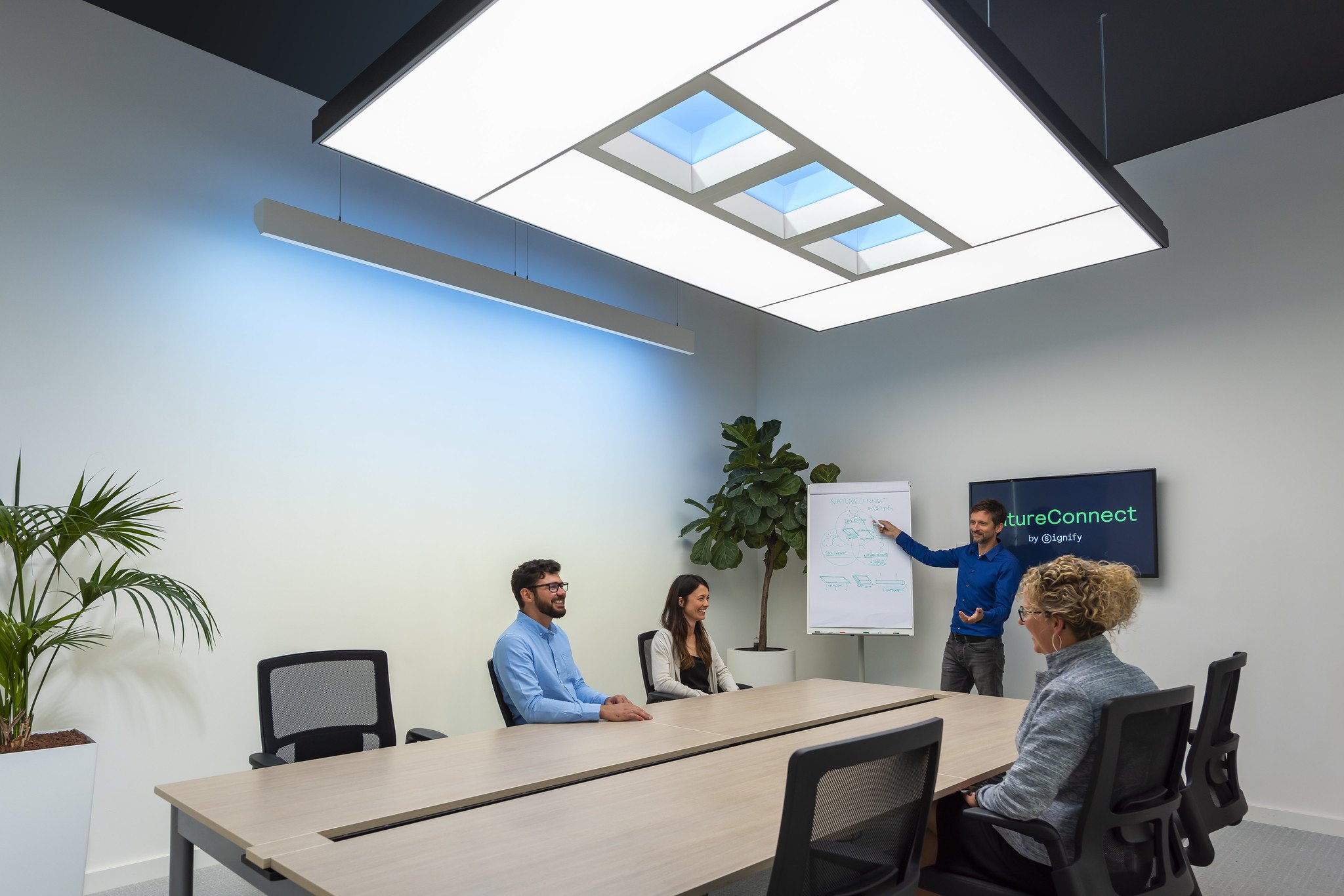 Systém NatureConnect od Signify v interiéru napodobuje přirozené denní světlo