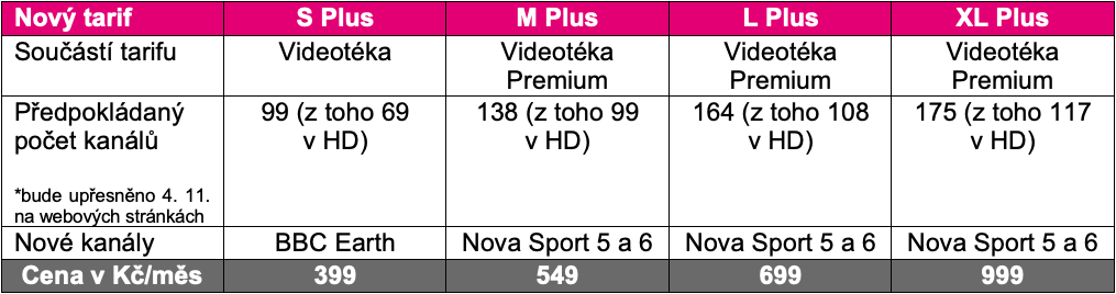 T-Mobile představil novou nabídku pro diváky MAGENTA TV a zjednodušil portfolio pro uživatele Pevného internetu. Nové TV tarify Plus budou nabízeny a všem stávajícím zákazníkům MAGENTA TV postupně aktivovány od 4. listopadu 2024.