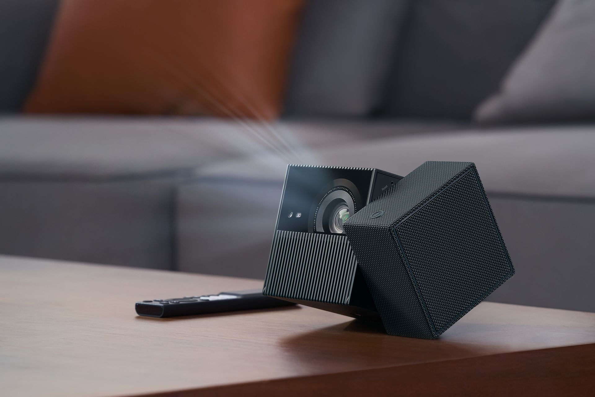 Projektor TCL PlayCube usnadní promítání obsahu na jakýkoli povrch – na zeď, strop nebo třeba i na stěnu stanu – a to bez nutnosti přesouvat nábytek, bez kabelů, bez vrtání. Stačí otočit, namířit a spustit přehrávání. Díky kompaktnímu kostkovému designu není problémem ani časté přenášení.